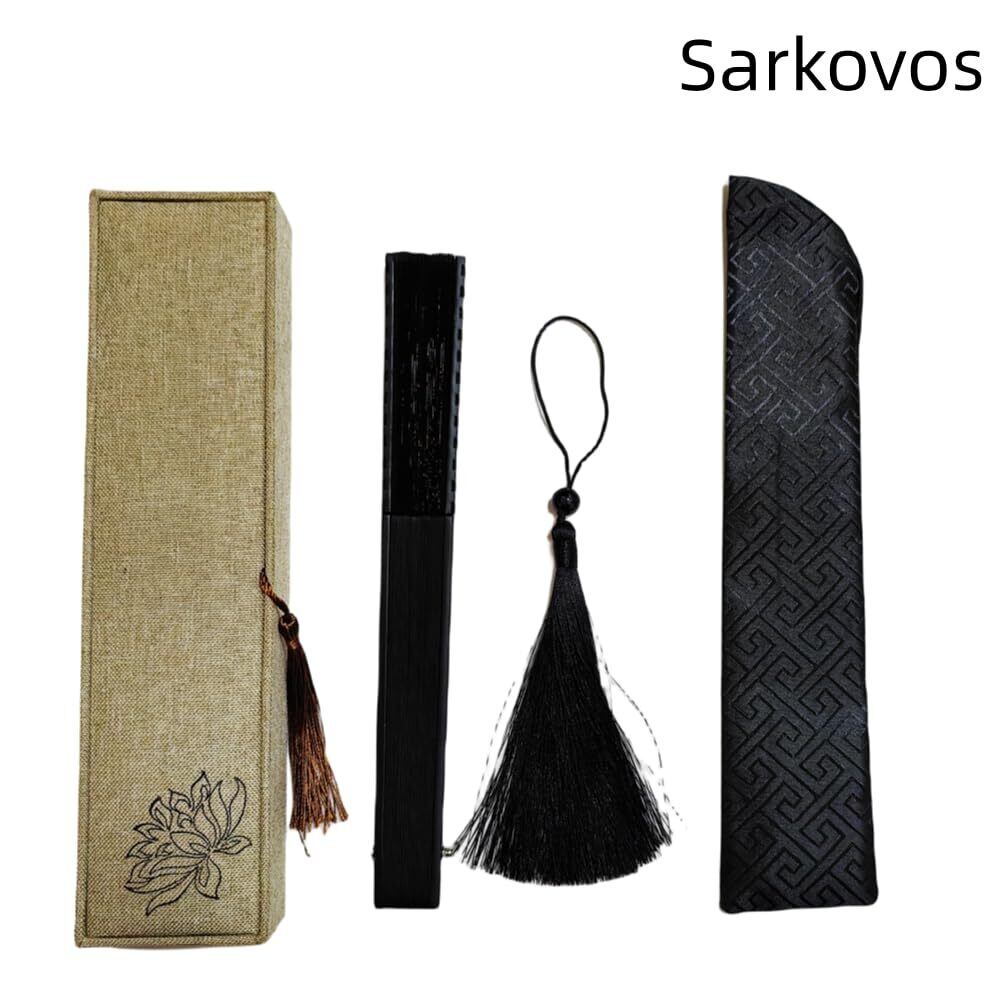 Sarkovos扇子 メンズ おしゃれ 高級扇子 プレゼント 父の日 花火大会用 海外 お土産 浴衣 着物 和小物 夏の祭り 歌舞伎小物 猛暑対策 お土産 (黒竹1)