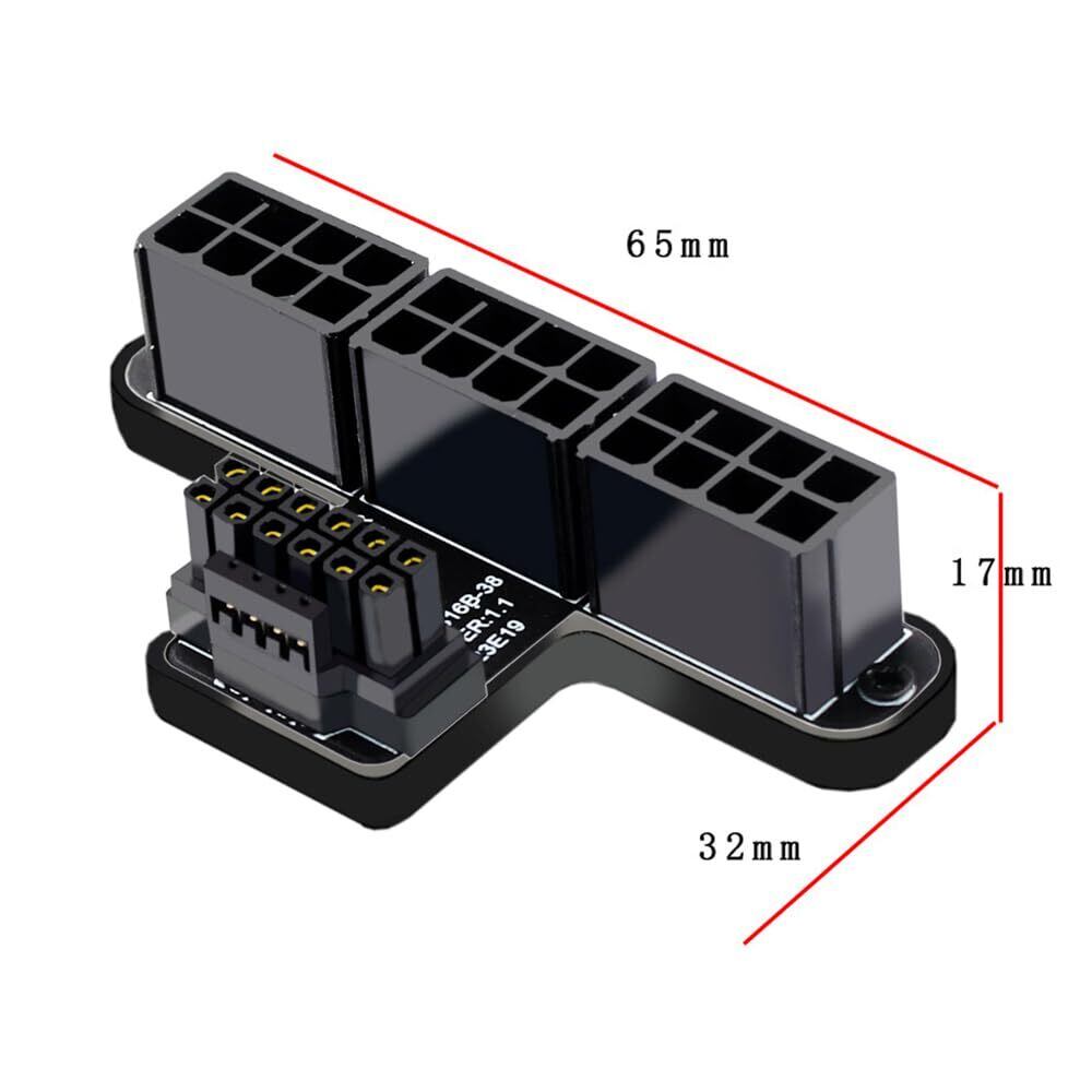 当社の12VHPWRから3xATX8P 90度アダプターは、GPUとサイドパネルの間のスペースを増やします。 これにより、より狭いシャーシにスーパーワイドカードを取り付けることができます。