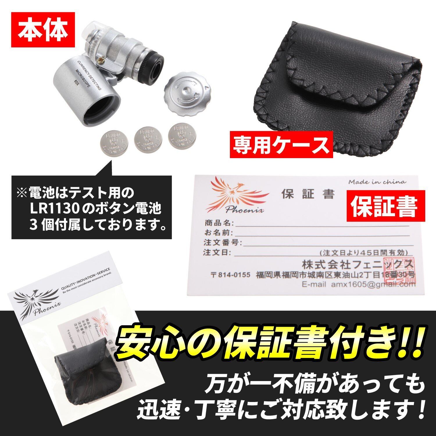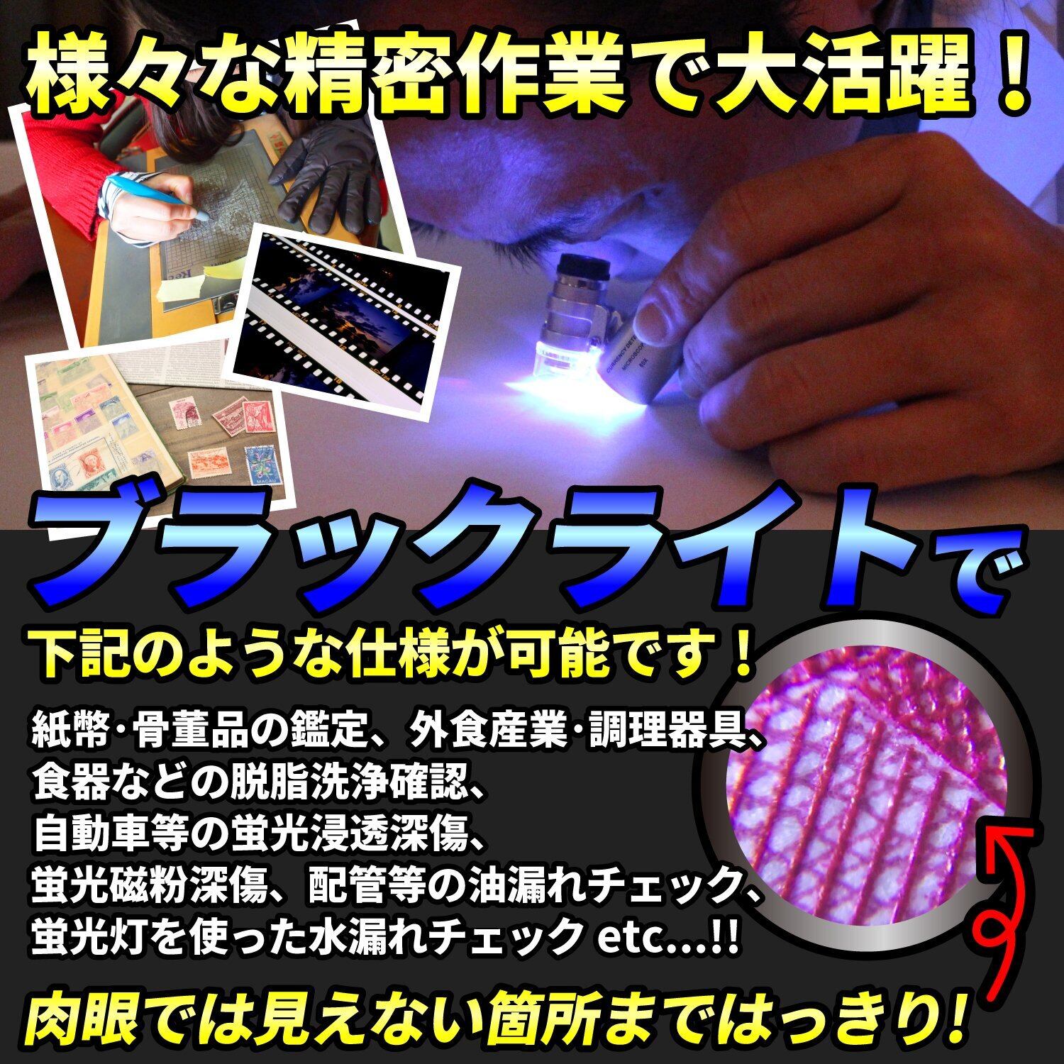LEDハンディ顕微鏡【倍率60倍】LEDライト/ブラックライト/ボタン電池3個/専用ケース付き 拡大鏡 ルーペ