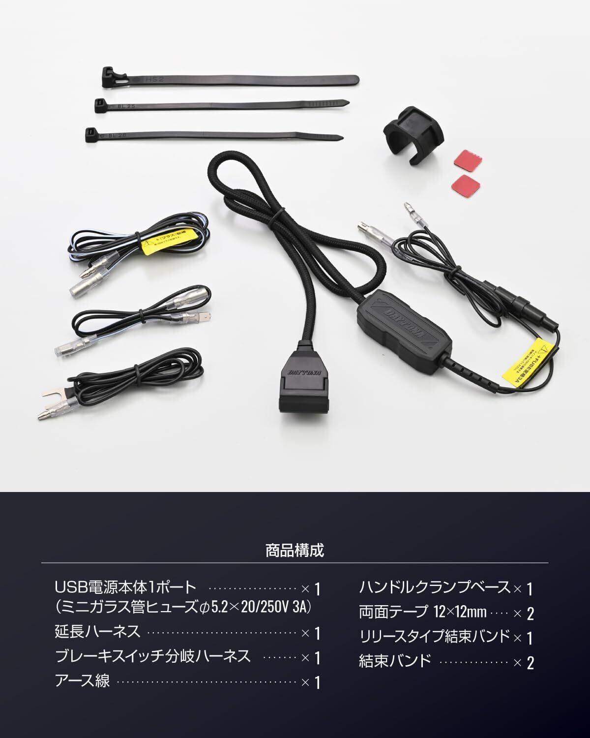 【特価商品】デイトナ(Daytona) バイク用 USB電源 USB-A 12W 防水 iPhone/Android対応 ブレーキスイッチ接続 メインキー連動 1ポート 99502 | lcsshop