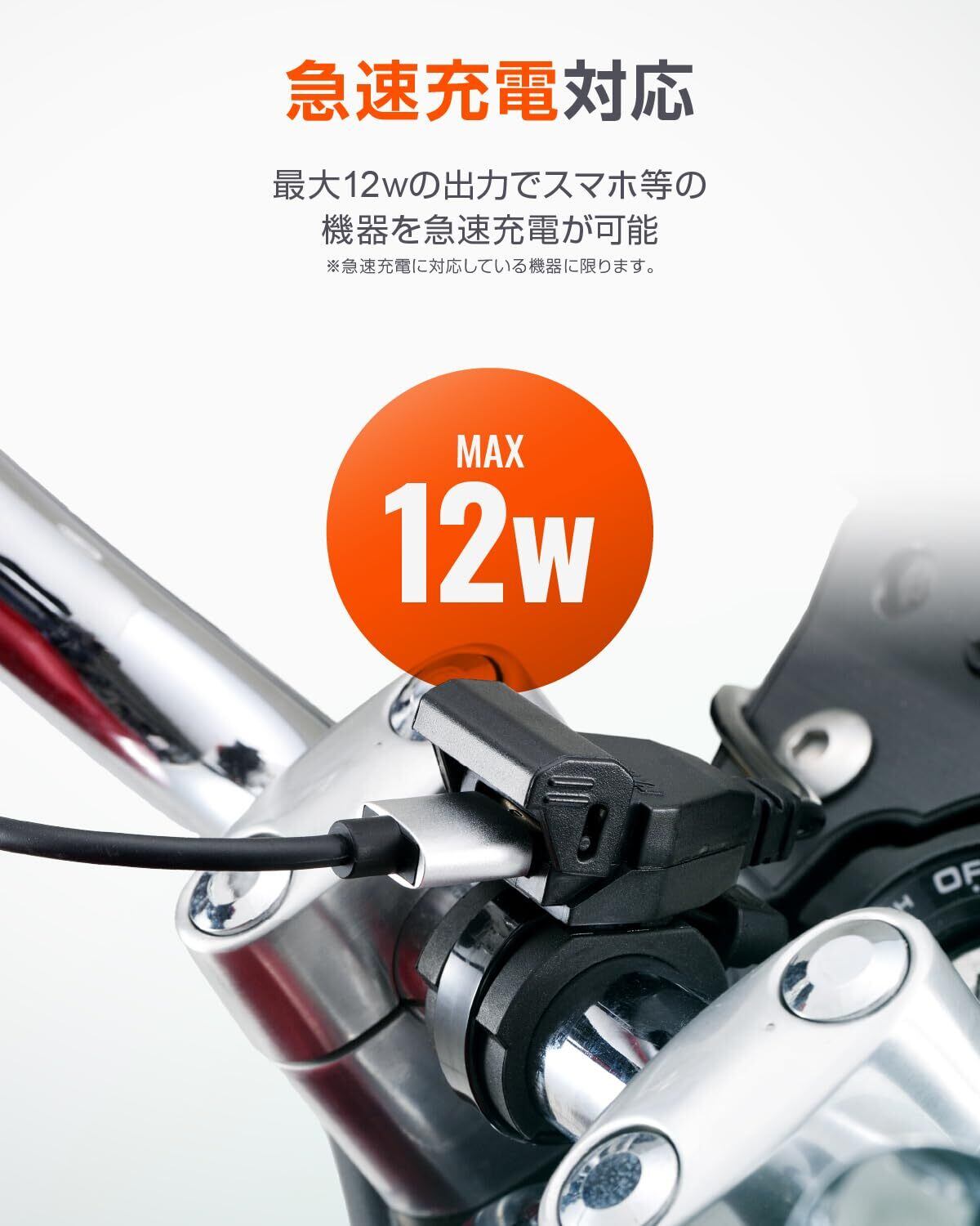 デイトナ(Daytona) バイク用 USB電源 USB-A 12W 防水 iPhone/Android対応 ブレーキスイッチ接続 メインキー連動 1ポート 99502