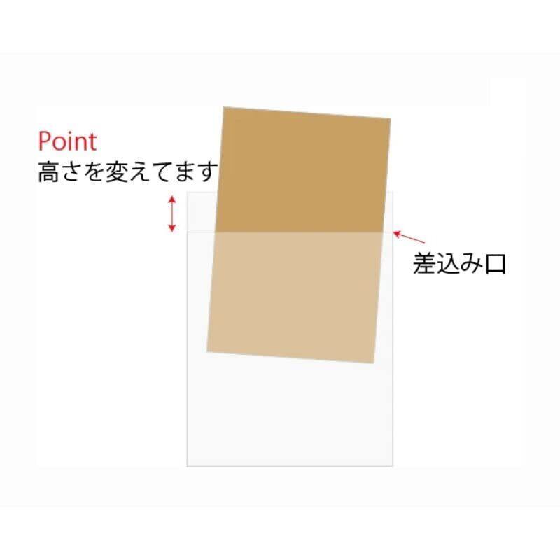 表面にポケット収納20枚付き。職人が1枚ずつ手作業で貼り込み、差込口の手前側の高さを低くして段差をつけてあるので、出し入れしやすくなっています。