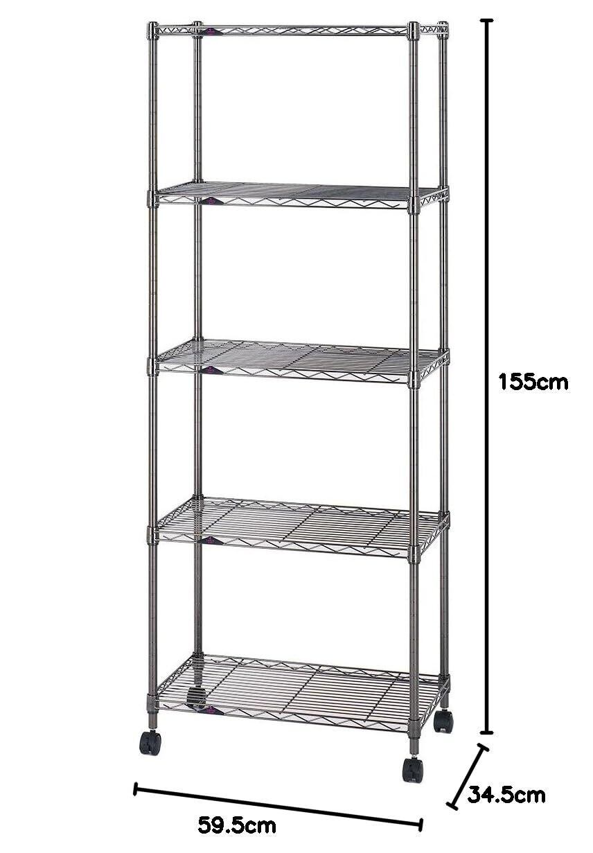 【新春セール】ドウシシャ ルミナス ブラック 幅60 5段 スチールラック 収納棚 艶のある黒色 幅59.5×奥行34.5×高さ155cm 全体耐荷重400kg 頑丈 キャスター付き 防錆加工 ポール径19mmパーツ対応 業務用 シェルフ キッチン収納 BN1560-5 | lcsshop