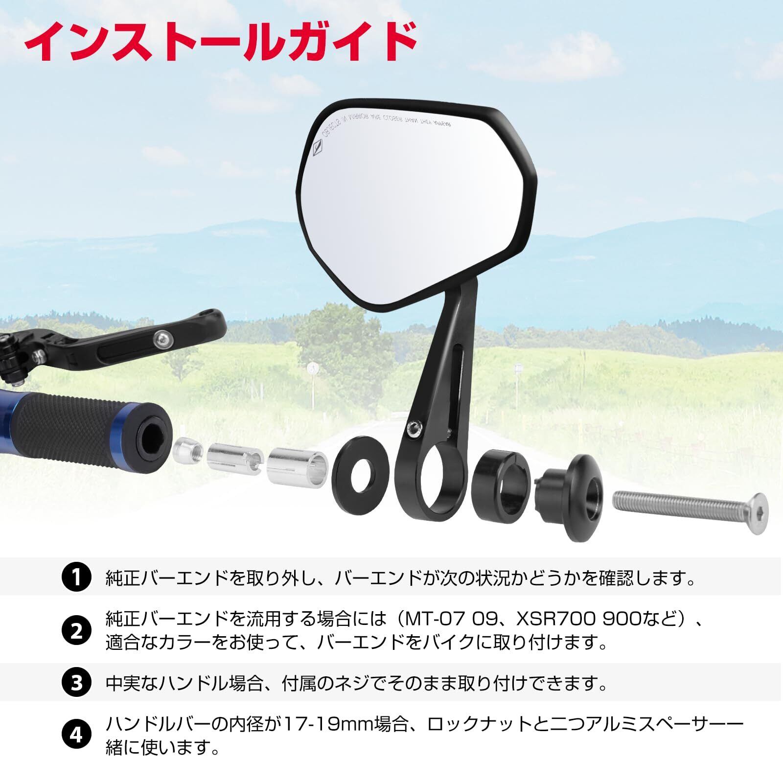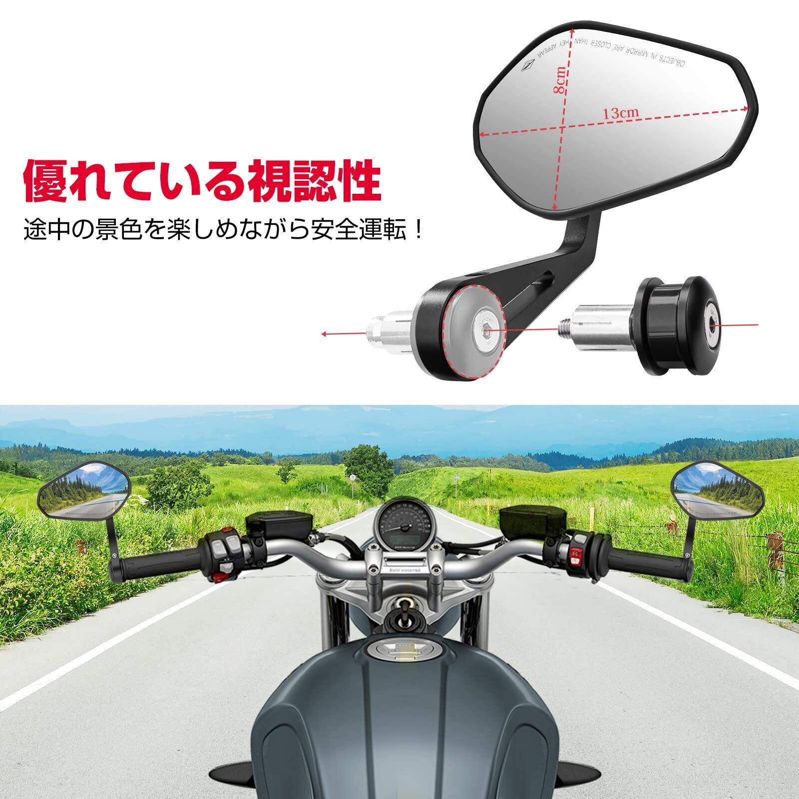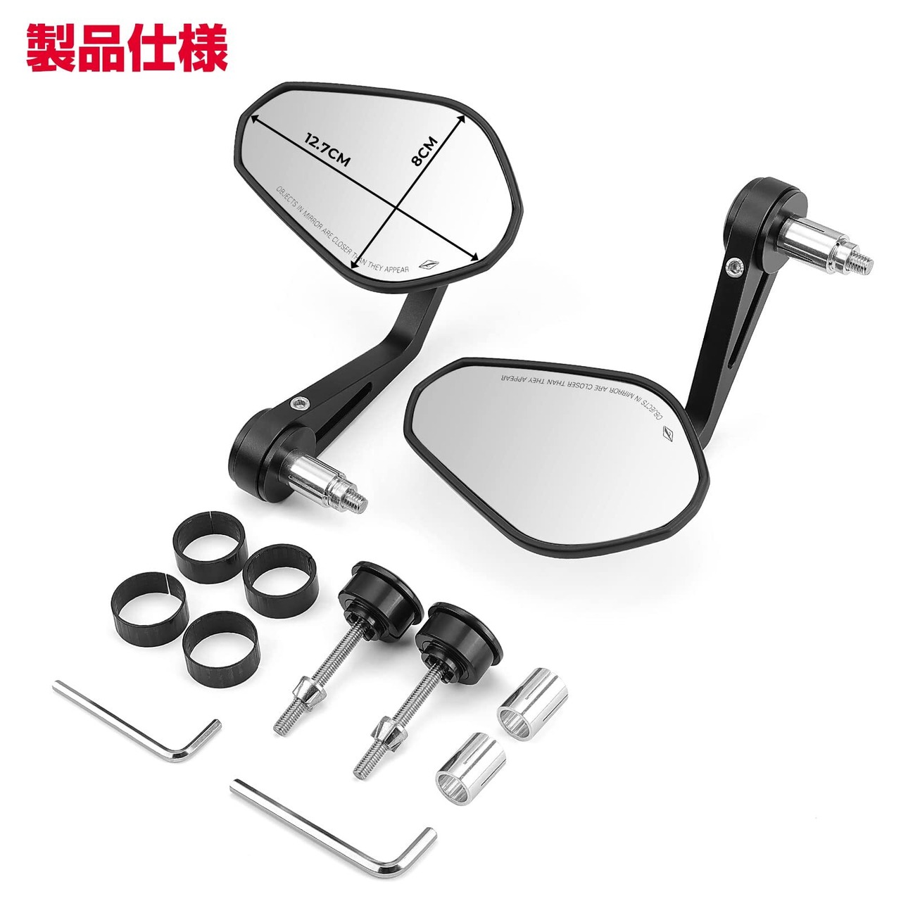 KEMIMOTO バーエンドミラー バイク用 ミラー オートバイミラー CNC加工 汎用ミラー ブラック 左右セット 車検対応 凸面鏡 (長型)