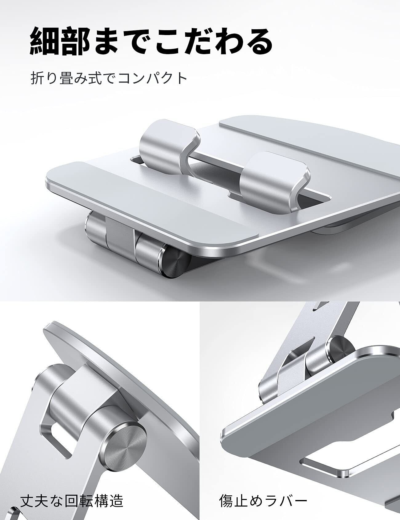 折り畳み式 タブレット スマホ 兼用 スタンド ホルダー 角度調整 Lomicall iPad用 stand : アルミ 合金製 卓上 縦 横置き すたんど タブレット 置き台 YouTube 動画 テーブル デスク 持ち運び 4~13 インチ ipad 10 第十世代 ipad pro mini Air android huawei Galaxy に対応 - シルバー