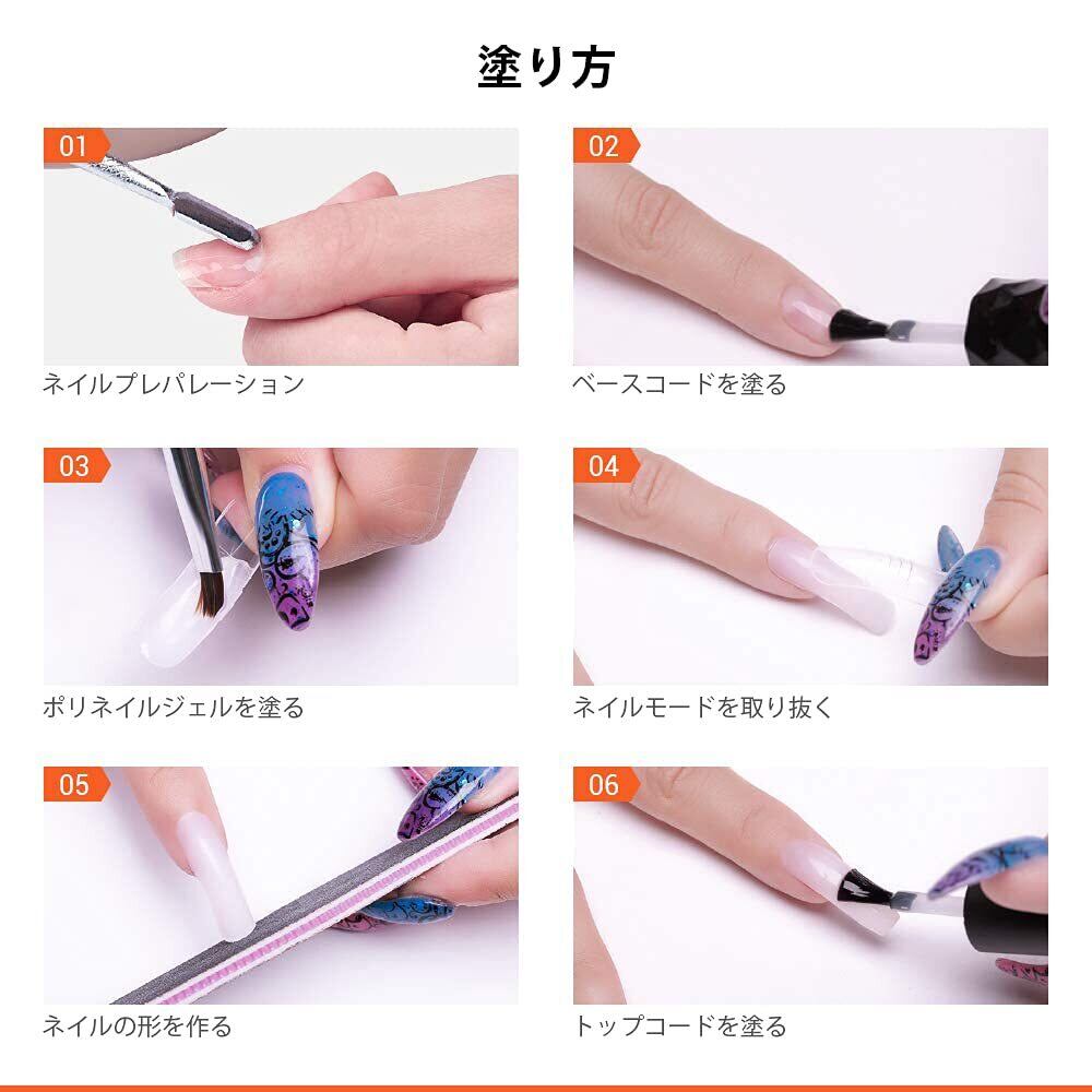 セット内容:本ポリネイルジェルの内容量は30g*2本、大容量で、ネイルサロンや自宅でのDIYに最適です。