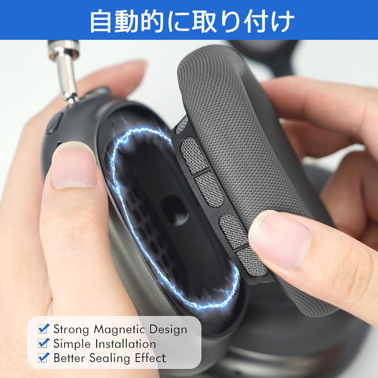 取り付け簡単: イヤーパッドをAirPods Maxイヤホンに装着すると、内部マグネットで1分だけで自動的にイヤホンに取り付けられます。