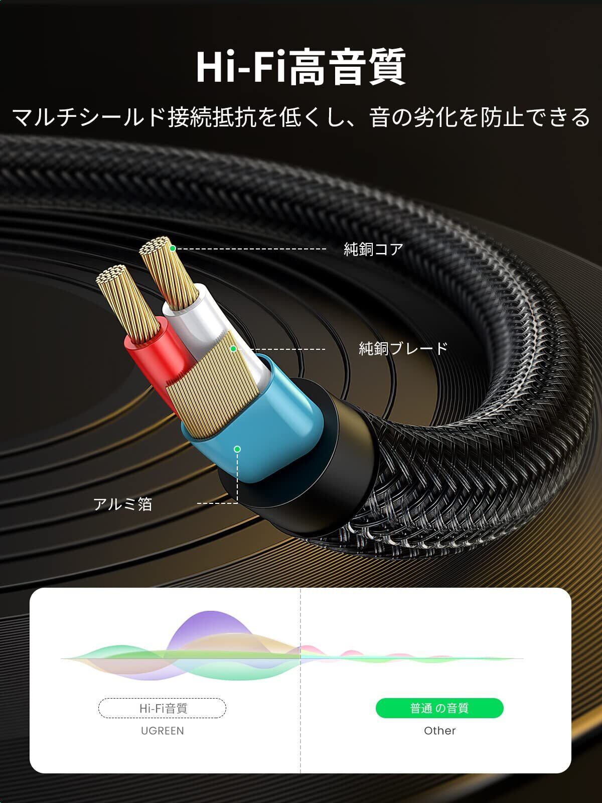【Hi-Fi高音質再生】高純度のOFC無酸素銅等で作成された多重シールド、信号転送をさらに安定に。標準なステレオケーブルの内部線芯構造、電波干渉を防止でき、信号の損失を最小限になります。お自宅、オフィス、アウトドア等の場所には、Hi-Fiオーディオを楽しめます。