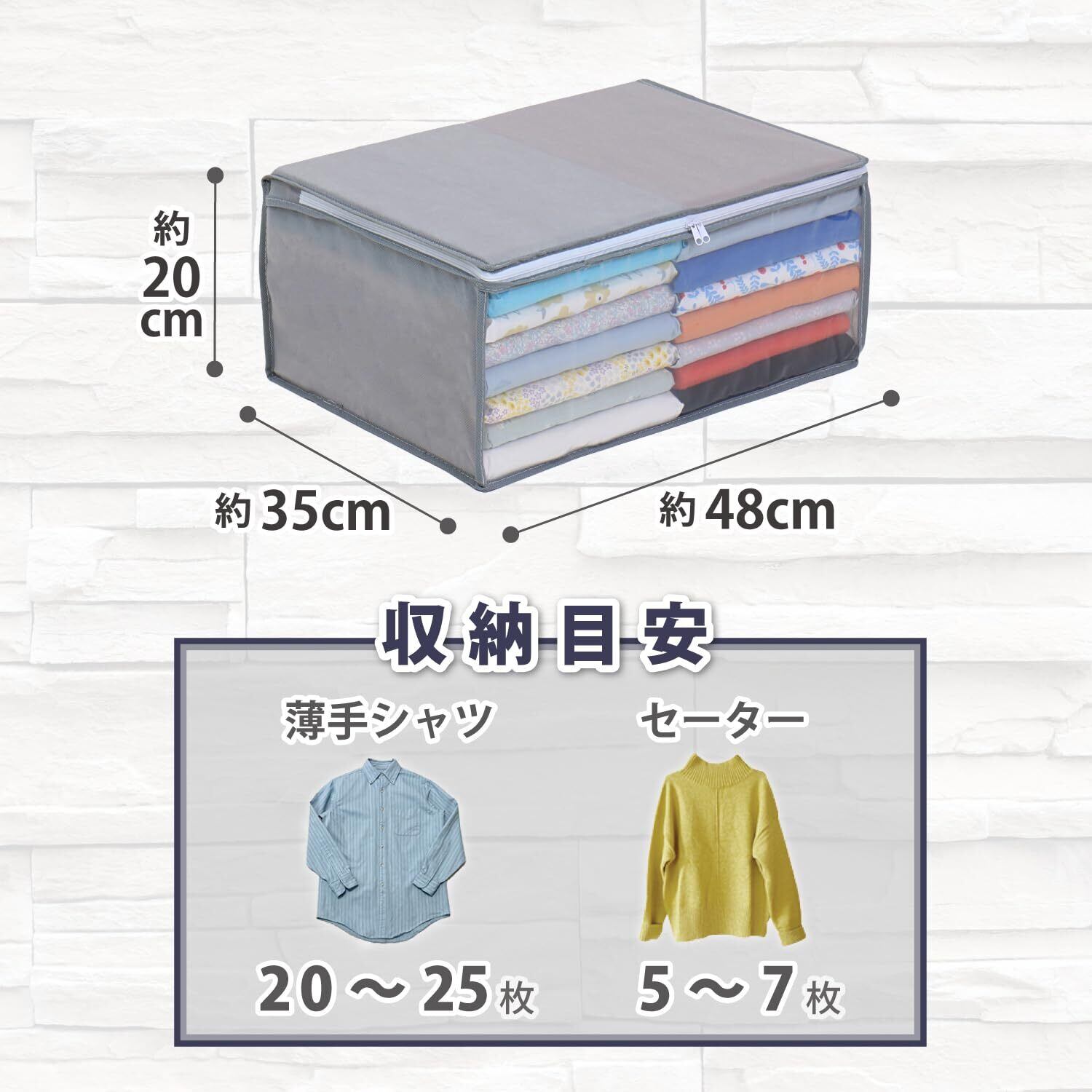 【商品仕様】:サイズ/約幅48×奥行35×高さ20cm、カラー/グレー、内容/3枚、収納目安/厚手セーター約5~7枚・薄手シャツ約20~25枚(袋1枚あたり)、材質/ポリプロピレン、ポリエチレン