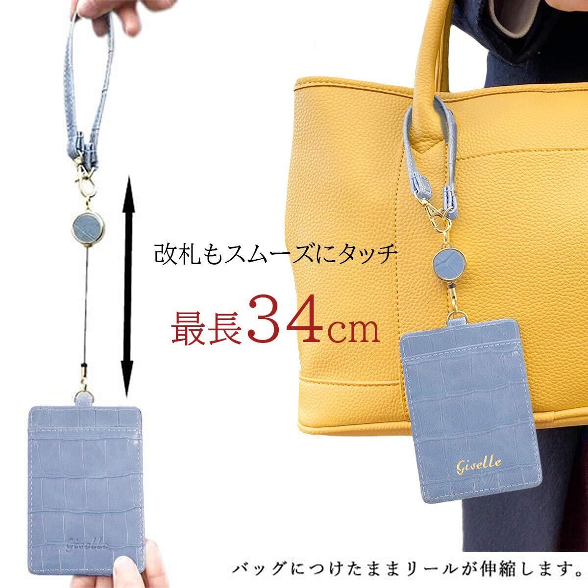 [ジゼル] パスケース リール付き レディース 定期入れ メンズ idカードホルダー icカードケース 社員証 カードケース 両面 ストラップ付 通勤 通学 クロコ風型押し(Lamp Black/ランプブラック(ゴールド箔)