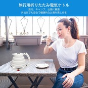 超薄型アップグレードされたシリコーン旅行折り畳み式電気ポータブルケトル、折り畳み式湯沸かし器分離可能な電源コード100V 555ML、沸騰ドライ保護 (ホワイト)