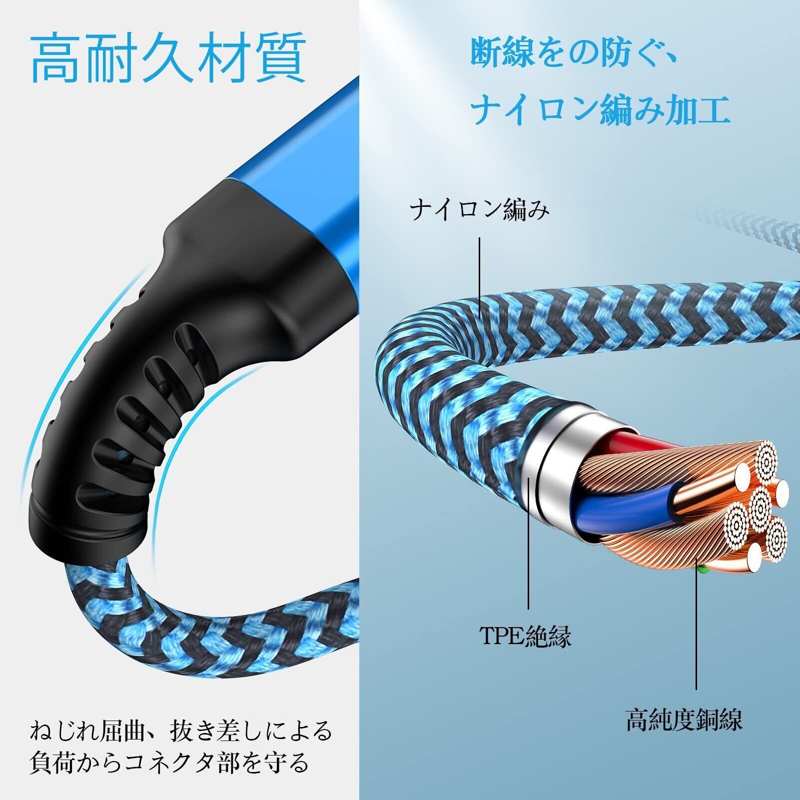 【頑丈な構造】2本セット 充電コード 2in1は優質ナイロン編み、一般的なケーブルより10倍以上の耐久性をもち、10000回以上の厳しい折り曲げテストもクリアしました。断線防止のため、アルミ合金製接続口を採用し、高耐久性で抜挿寿命性向上、安心して充電することができます。