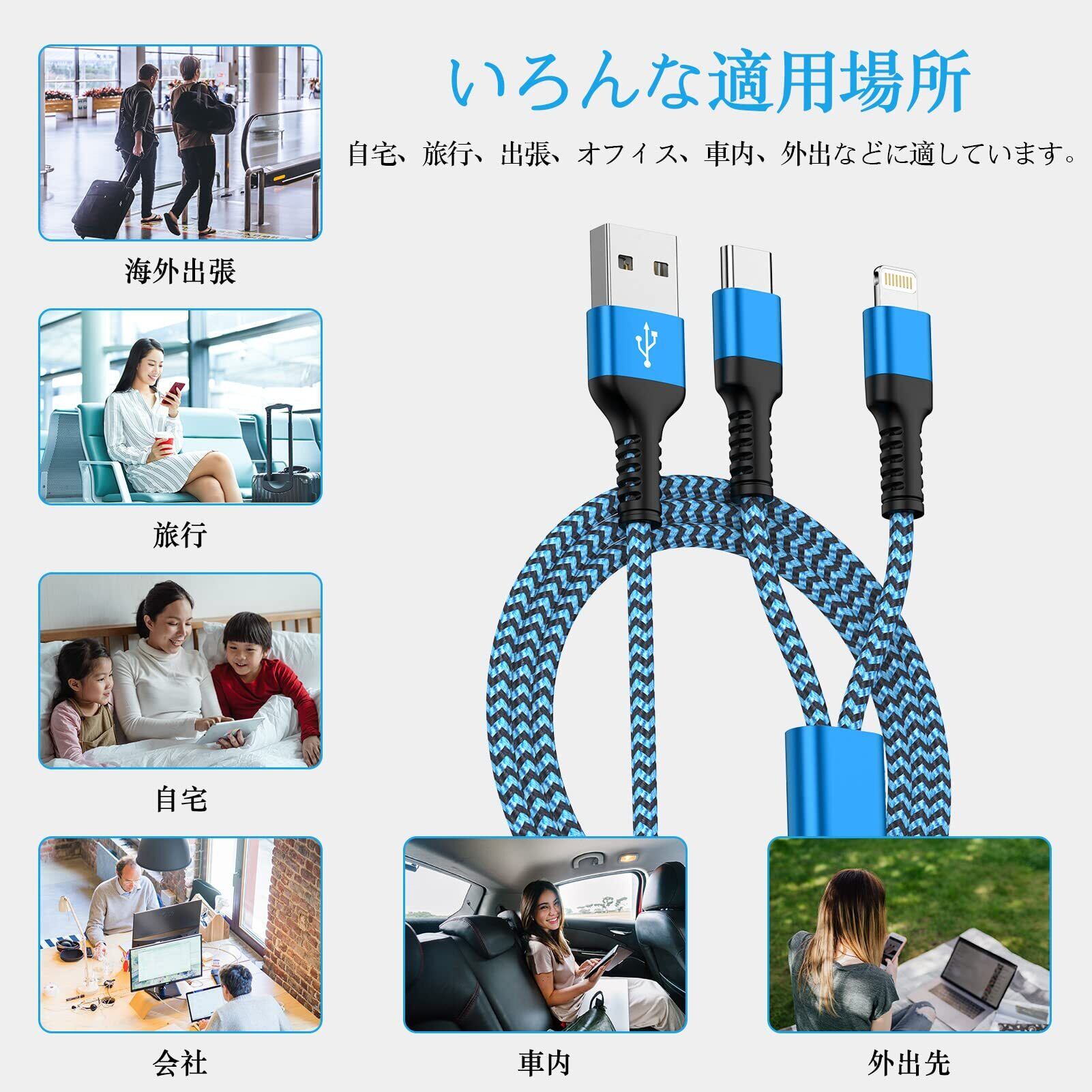 【1本2役】本製品はType-Cとライトニング接続端子を1本の高品質なケーブルにまとめまして、2台のデバイスが同時に急速充電できます。家族、旅行、仕事、出張、さらには車の後部座席でも電子デバイスを充電するのに最適です。(ご注意:製造時期によりケーブル接続部のカラーに若干の違いがある場合がございます。予めご了承の上お買い求めください。)