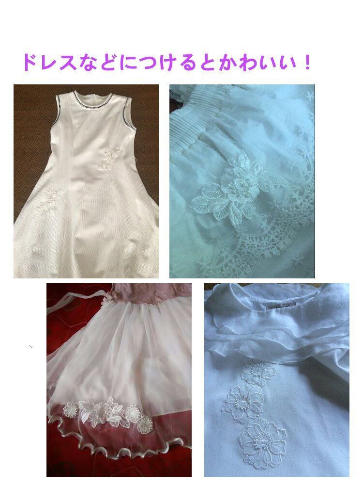 レース生地 刺繍花 縫製 DIY 服 工芸品の装飾 パッチ アップリケ モチーフ 10枚セット アイロン両面接着シート付No.16 (ホワイト10枚セット②)