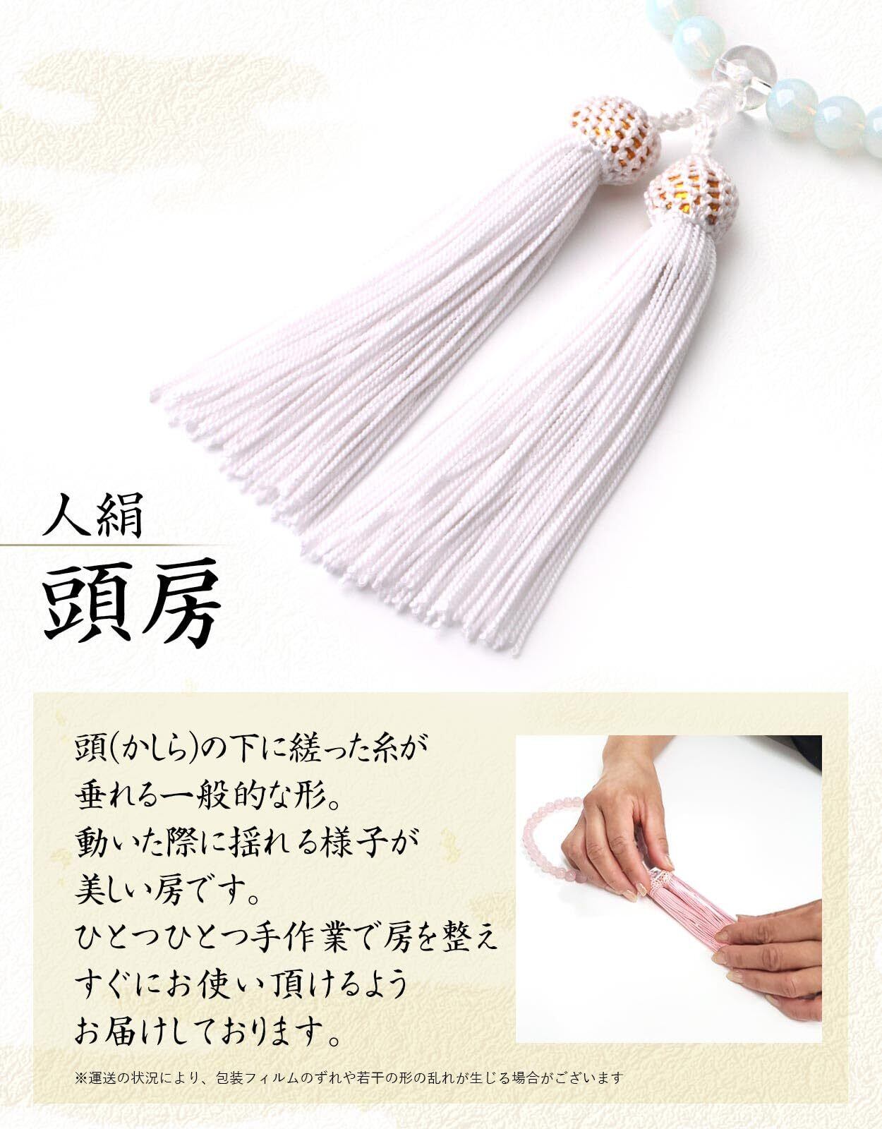 数珠 女性用 頭房 京都職人手作り 葬式 葬儀 数珠袋付き 天然素材 8mm [オパール]