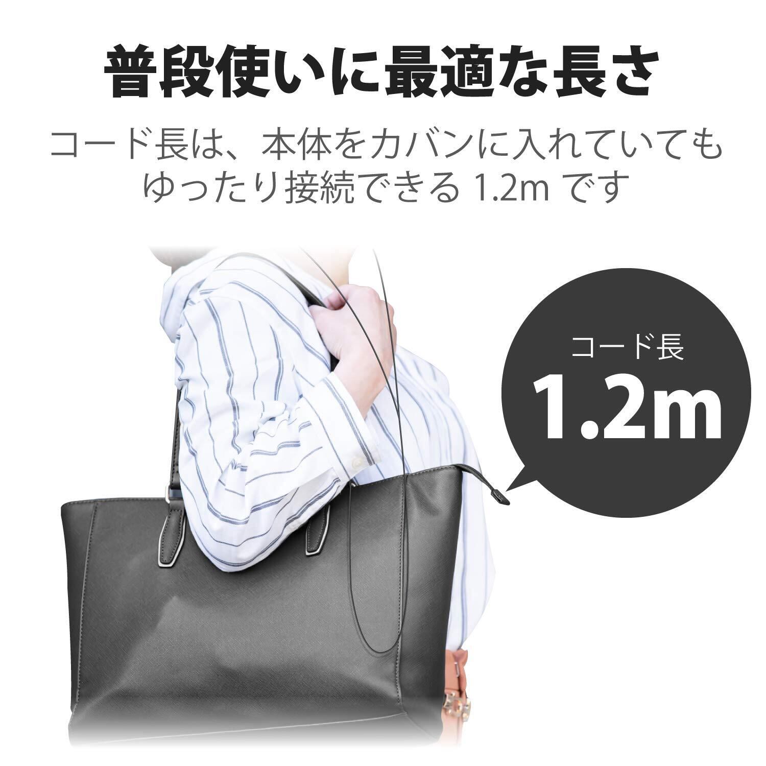 コード長は、本体をカバンに入れていてもゆったり接続できる1.2mです。