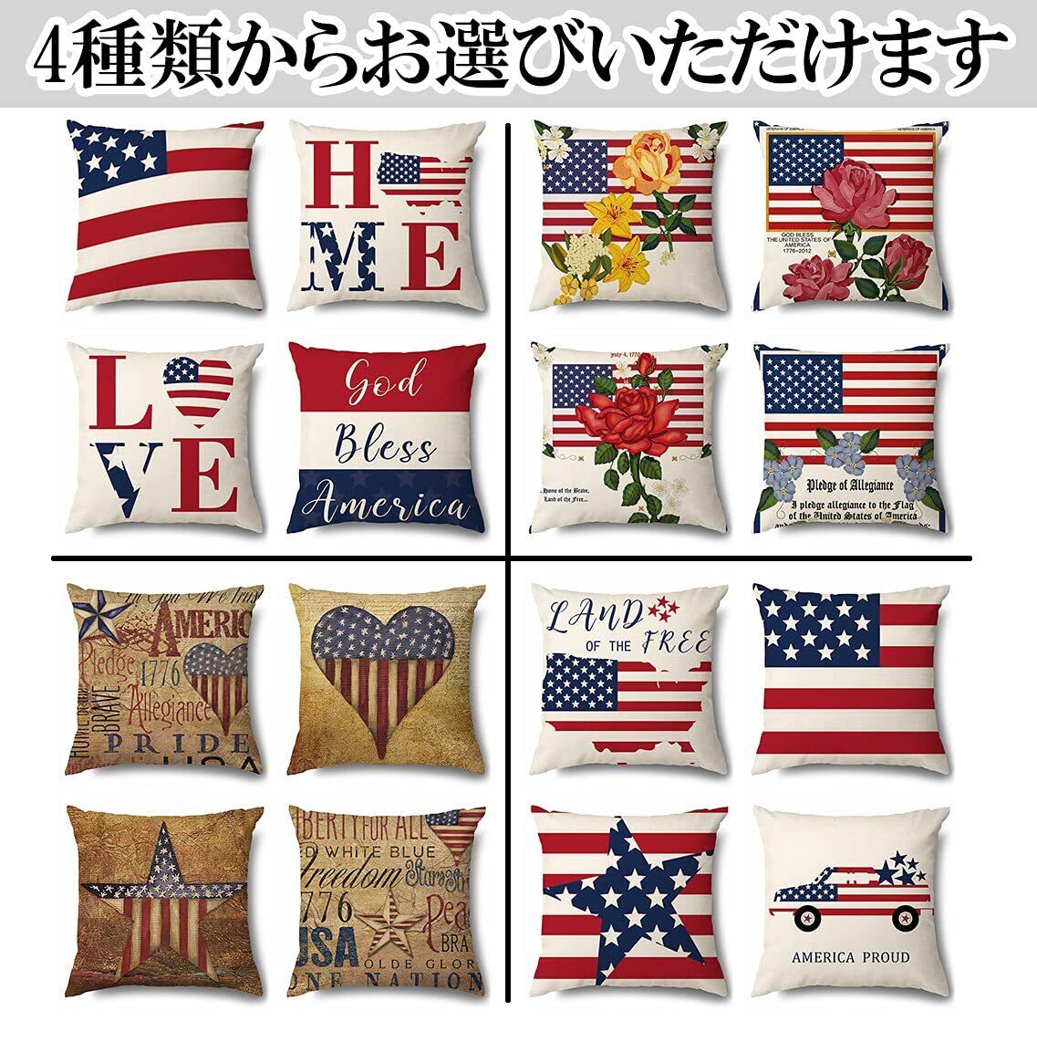 クッションカバー 45×45㎝ アメリカン 4枚セット ヴィンテージ風 リネン 座布団カバー 椅子 ソファー ベッド オフィス 車内 オシャレ インテリア 雑貨 TYPE-1