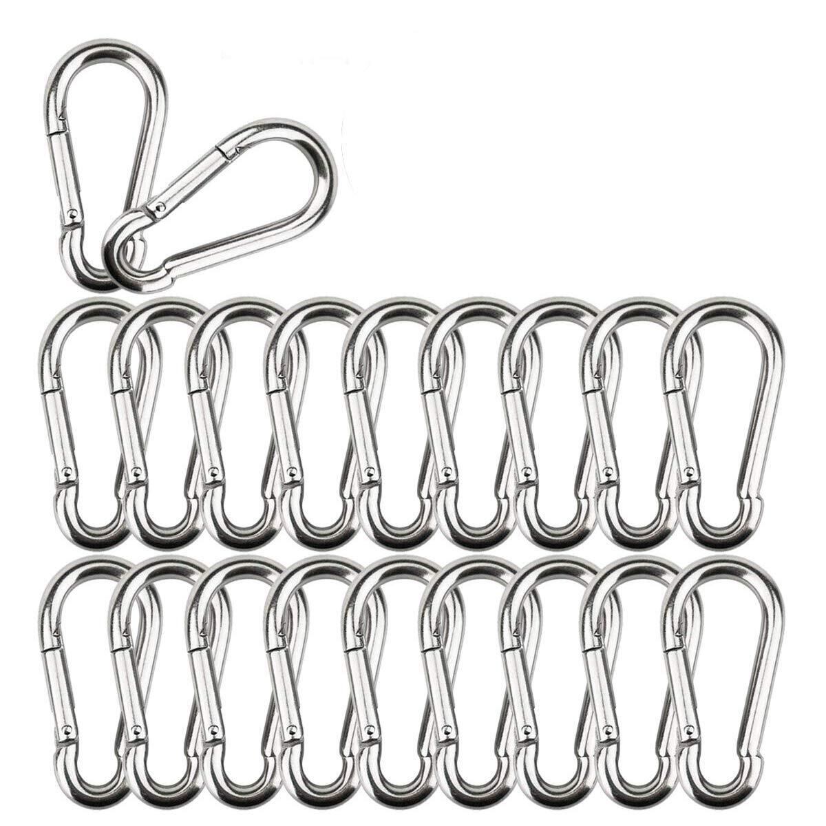 カラビナ 304ステンレス スプリングフック キーホルダー 多機能カラビナ アウトドア トレッキング 落下防止 耐荷重80kg (5cm、20個セット)