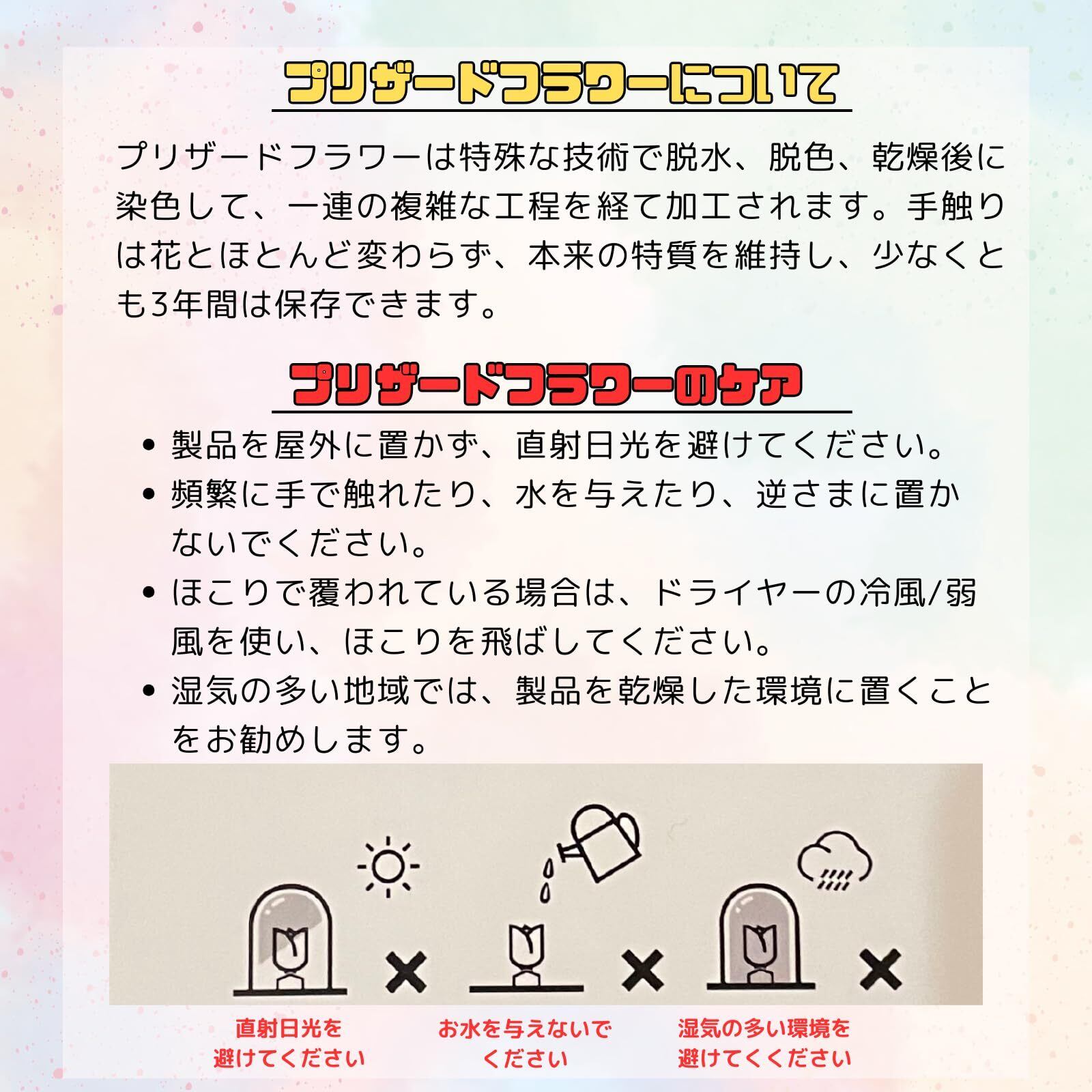 【ガラスドーム】ガラスドームは、光を受けてキラキラと美しく輝き、またお花をホコリからも守ってくれるので、枯れないお花を美しい状態で長く楽しむことができます.ガラスの表明を優しく拭いて頂くだけで、お手入れ簡単