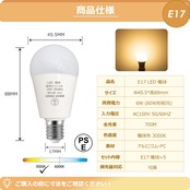 高品質:演色評価数は85以上に達し、物の本来の色を自然に美しく再現し、快適な照明環境を実現します。高品質のPC素材、壊れにくい、鉛、水銀など有害物質が含まない、環境に優しいです。当社 E17 LED電球 はPSE認証を取得し、安心お使いいただけるです。