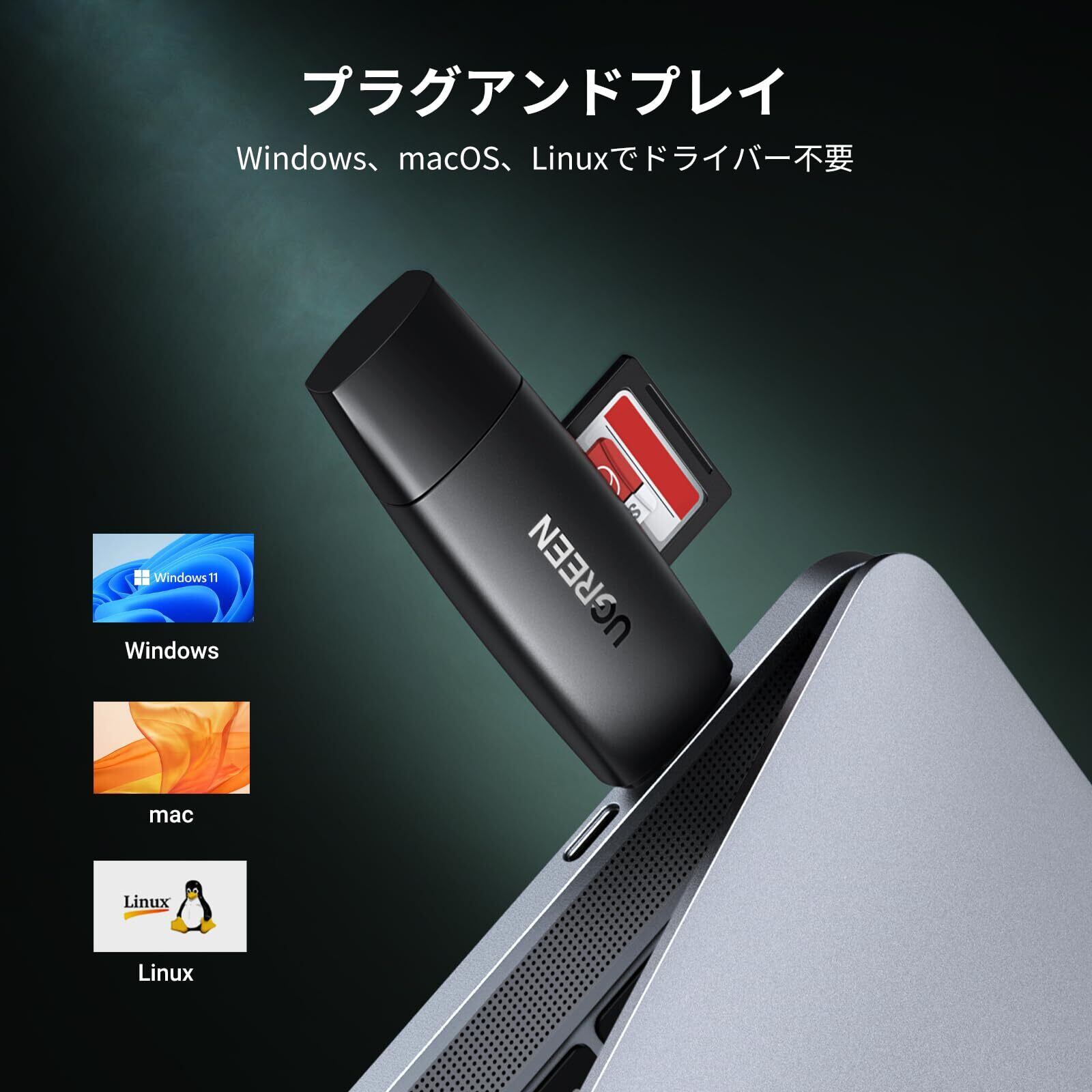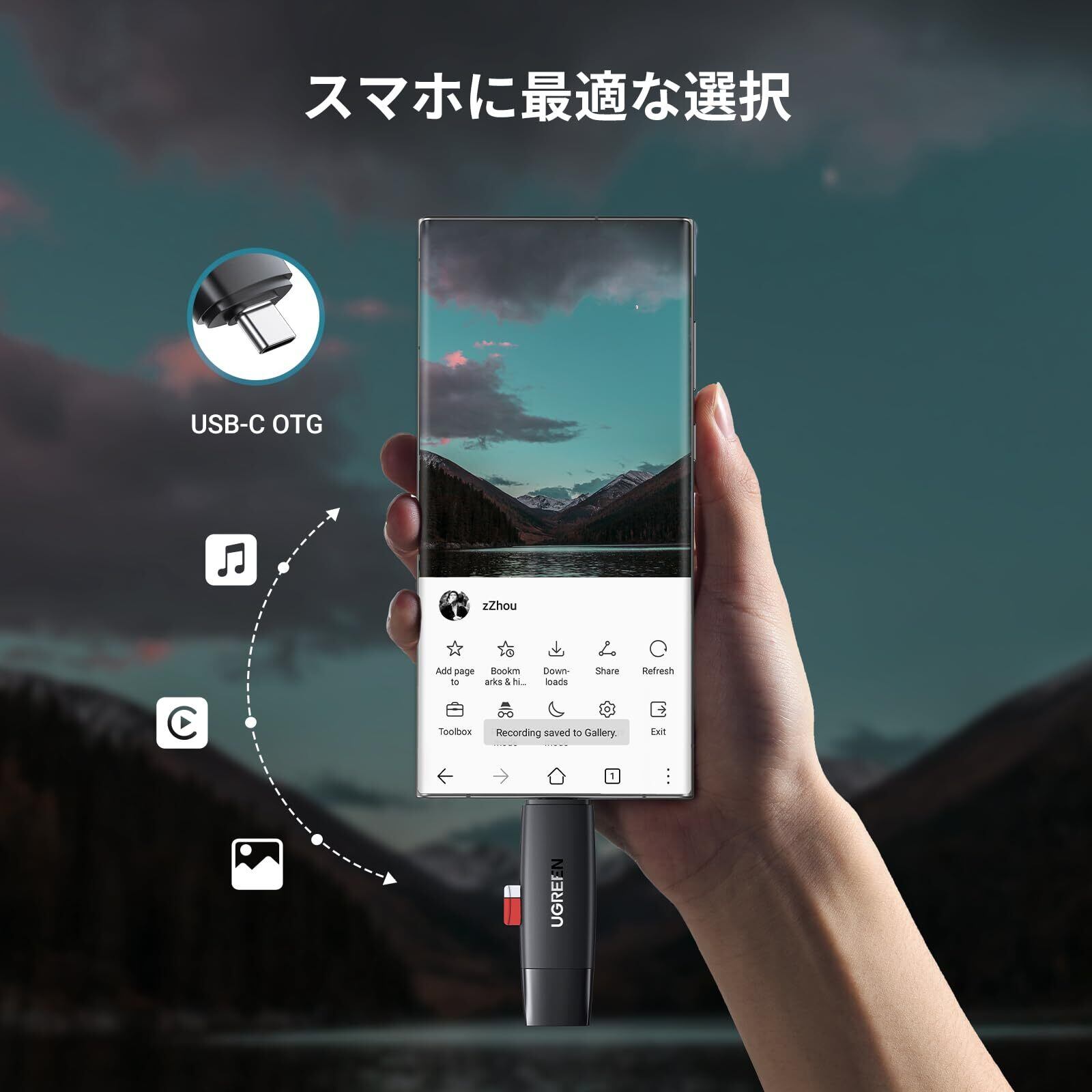 UGREEN SDカードリーダー Type-C OTG対応 1台2役 USB3.0 Microsd 2TBまで大容量カードに対応 Android スマホ タブレット、MacBook、Windows PCに適用