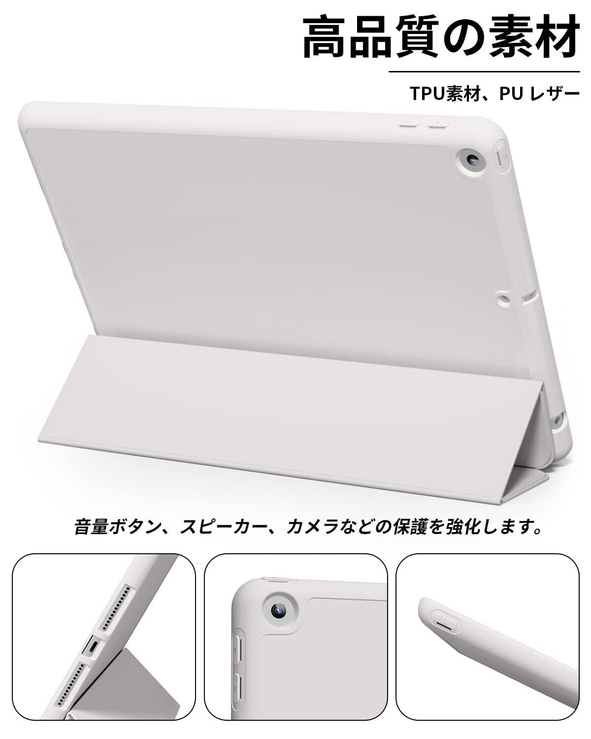 iPad 10.2 インチ 第9/8/7世代 (2021/2020/2019年) ケース オートスリープ/ウェイク機能対応 Apple Pencilペン収納・ホルダー付 スマートカバー ソフト TPU 薄型 軽量 耐衝撃 三つ折りスタンド グレー