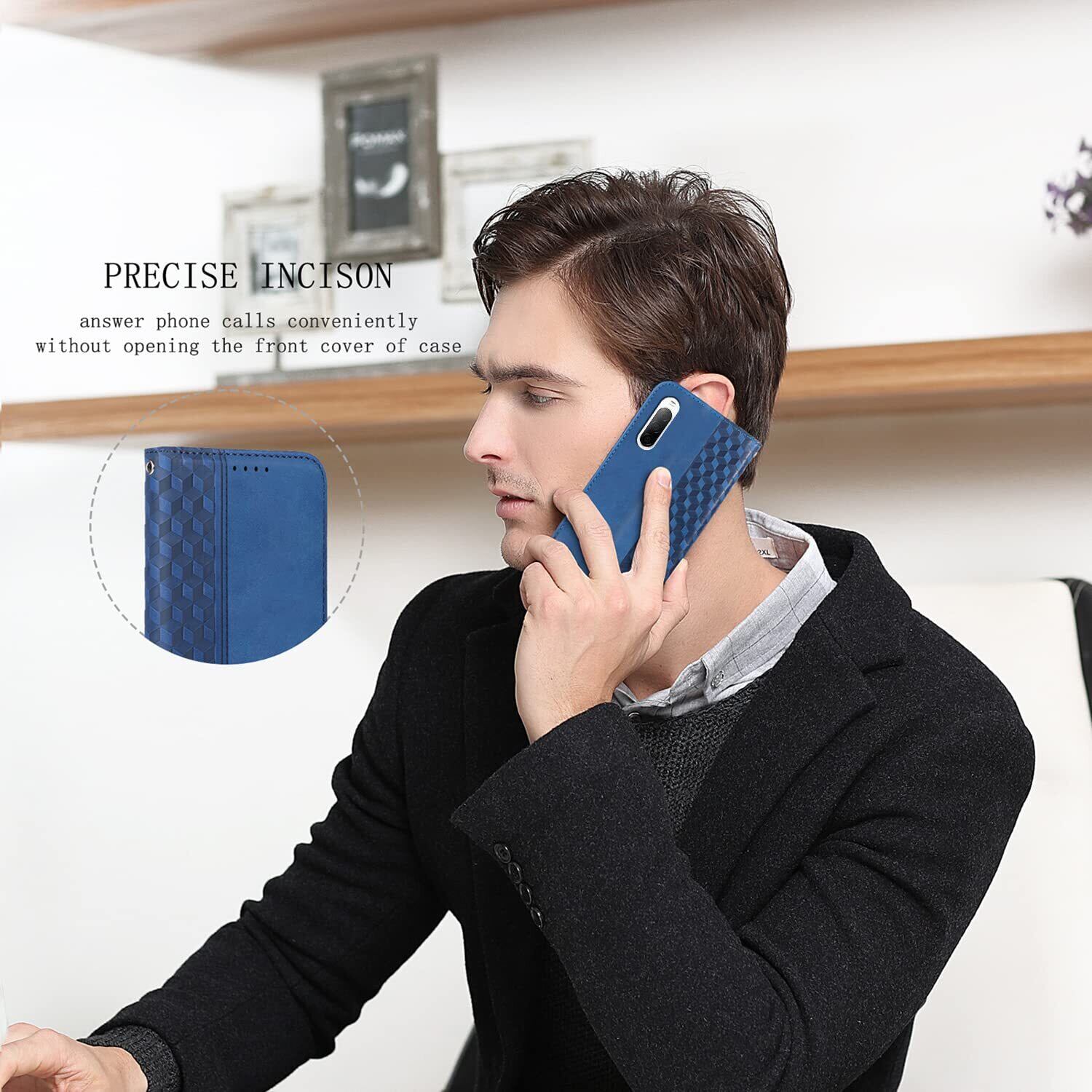 Xperia 10 V ケース 手帳型 SO-52D ケース ひし形柄 エクスペリア10 v ケース 手帳型 SOG11 ケース マグネット式 スタンド機能 Xperia10 V 携帯カバー カード収納 財布型 Sony Xperia 10 V スマホケース 軽量 薄型 Xperia10 V SO52D ケースカバー 全面保護 耐衝撃 6.1インチ対応 - ブルー