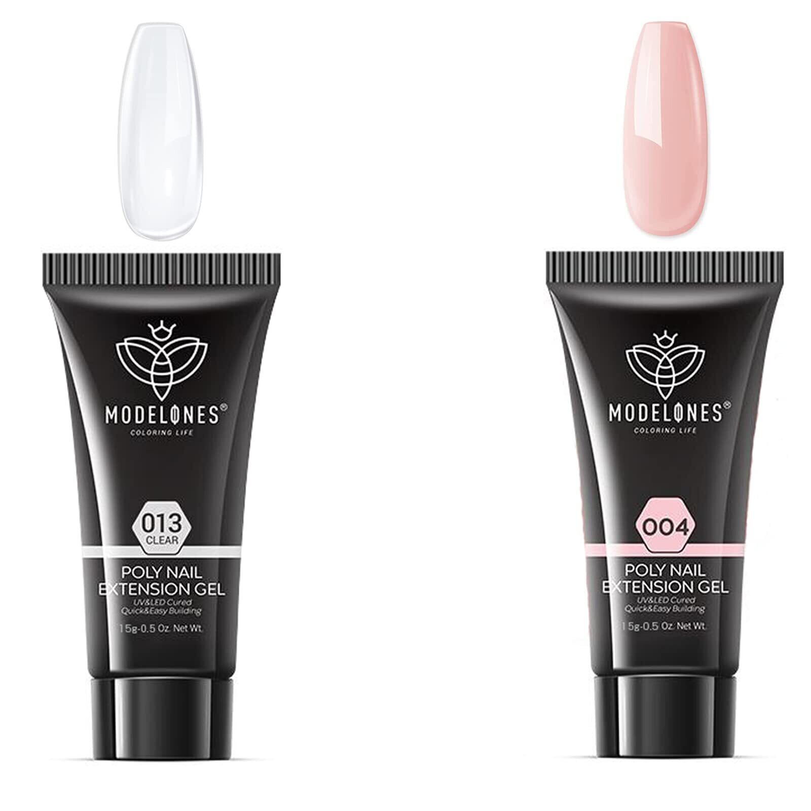 modelones ポリネイルジェル 長さだしジェルネイル カラージェル エクステンションジェル ジェル ポリッシュ二つ色セットUV/LEDライト対応 初心者用 (ナチュラルピンク&クリア)