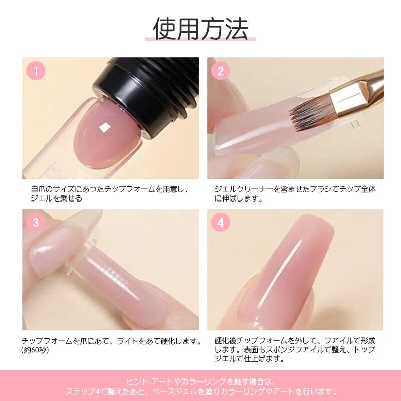 【セット内容】このポリジェルセットには、15 g * 2本の長いだしジェルが含まれており、ネイルサロンや自宅のDIYに最適です。爪が長いことで指が長く見え、手全体を美しく見せることができる!塗りやすいので、初心者の方にもお薦めします。
