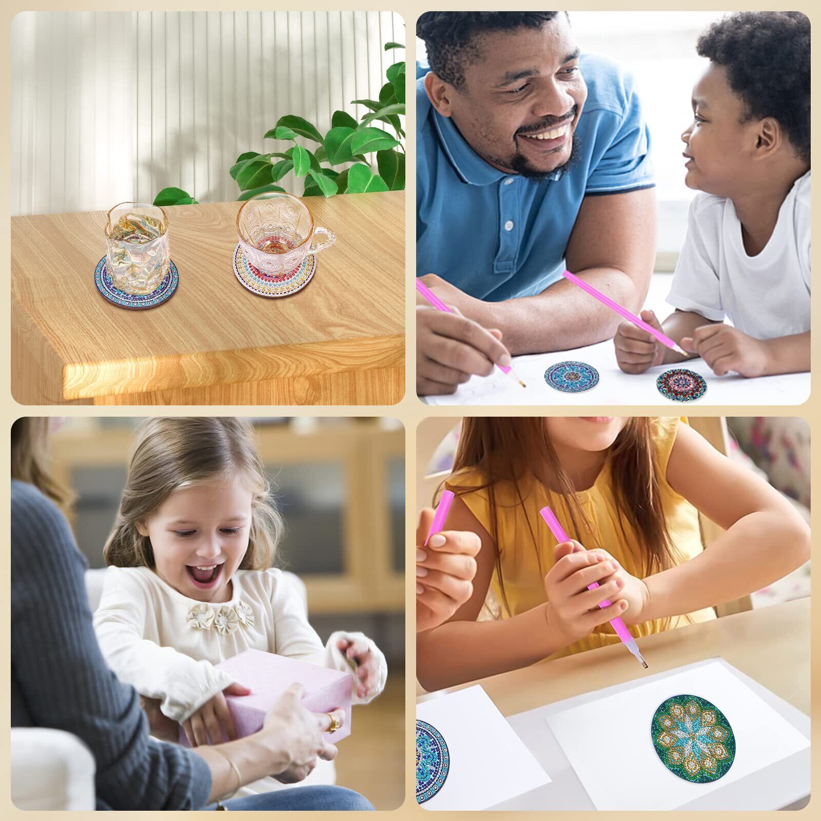 【使用範囲が広い】ほとんどのコップに適しており、ダイヤモンドペイントコースターは滑りにくく耐熱性があり、食卓、キッチン、オフィス、寝室などに応用できる。カップを敷く道具としてだけでなく、装飾にもなり、お部屋をよりキラキラと温かくすることができます。