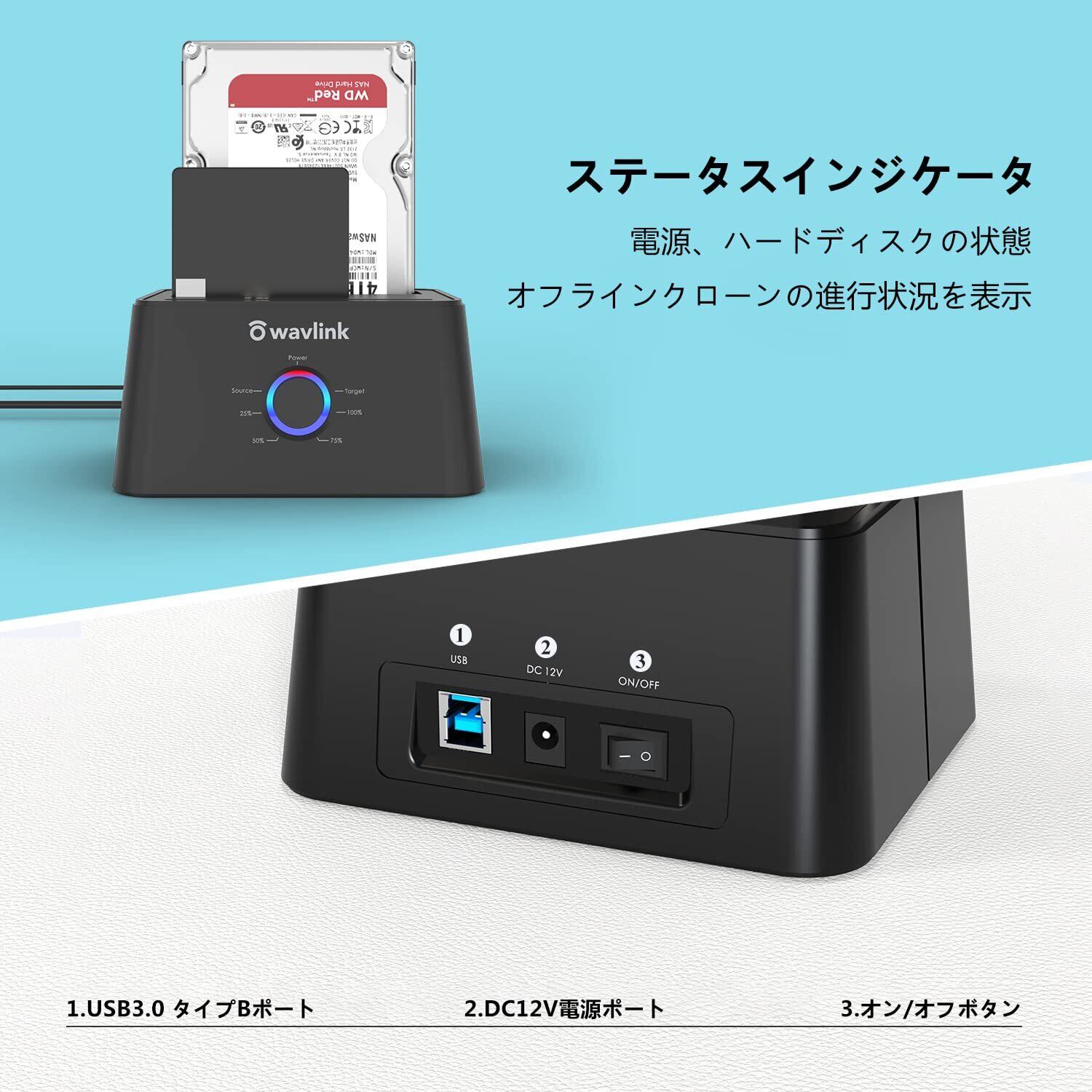 【2022最新】WAVLINK USB 3.0 SATA I/II/III デュアルベイ 外付けハードドライブ ドッキングステーション HDDスタンド 2.5/3.5インチ SSD HDD UASP(6Gbps)付き オフラインクローン デュプリケータと自動スリープ機能対応 [16TB X2] 黒色 | lcsshop