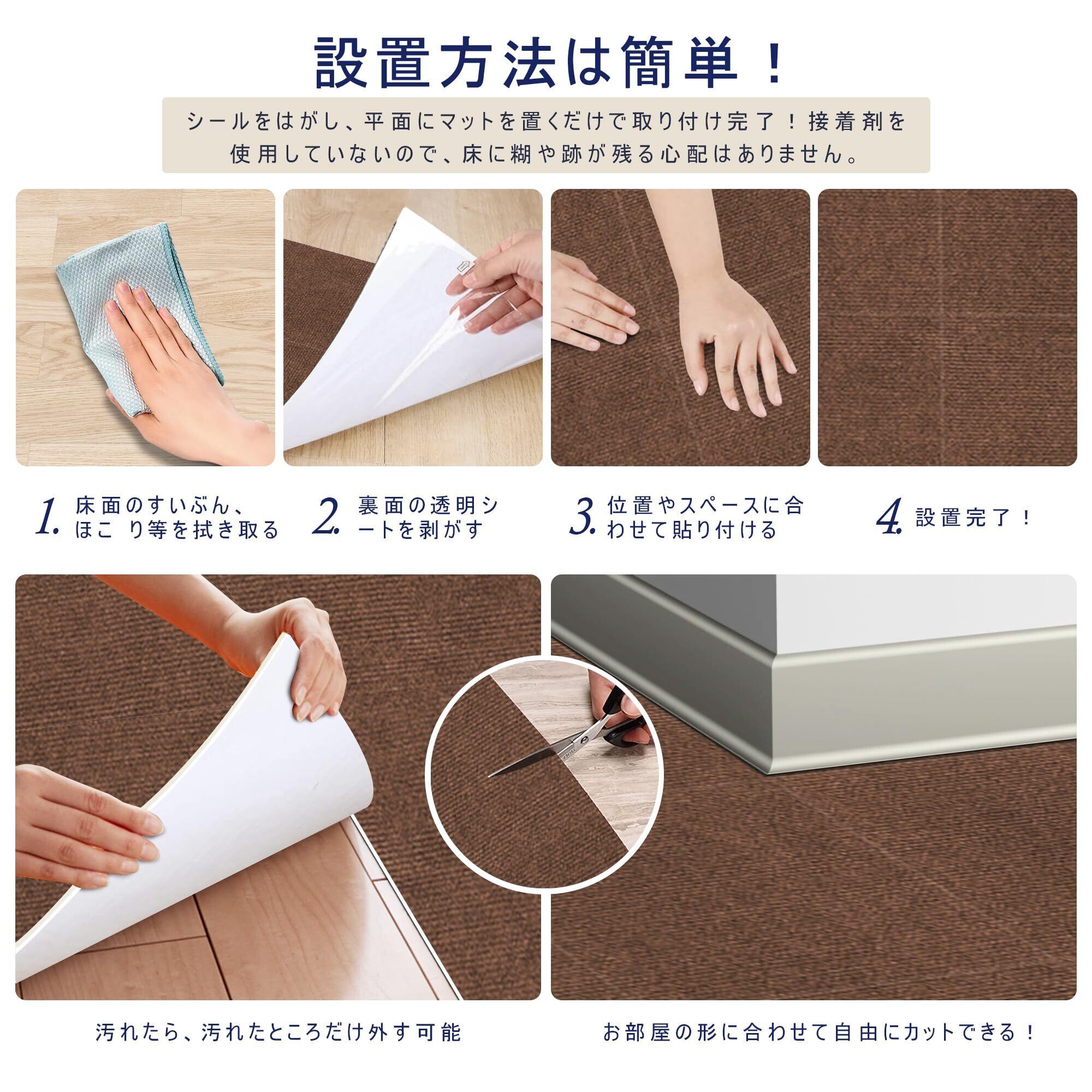 【在庫処分】【 限定ブランド】タイルカーペット HDMOD ジョイント マット【45x45cm 厚さ4mm】 40枚 吸着マット タイルマットズレない めくれない カーペット 防音マット フローリングカーペット 滑りとめ 防臭防菌 防音保温 洗濯機洗える ペット用カーペット お手入れ簡単 設置簡単(ブラウン) | lcsshop