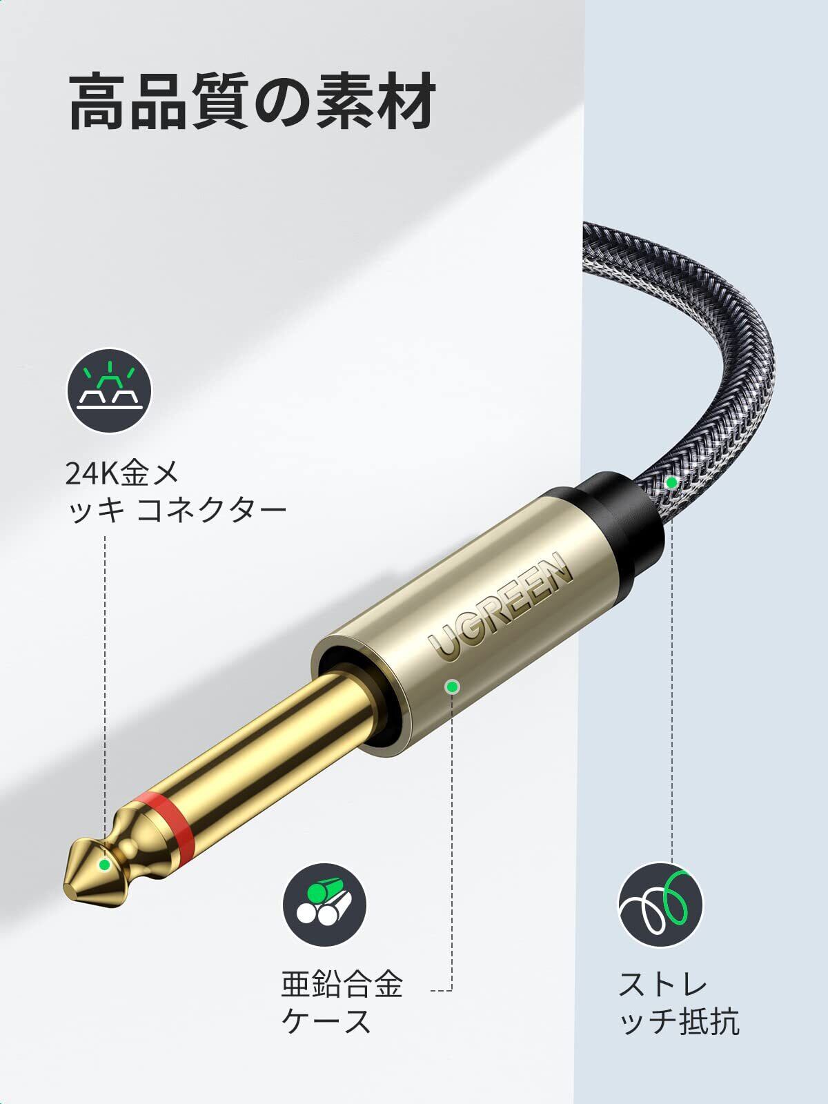 UGREEN 6.35mm*2 to 3.5mm オーディオ変換ケーブル 変換ステレオミニプラグ 6.35mm 2分配ケーブル オス-オス 高耐久性ナイロン編み HIFI音質 24K金メッキ コネクター スマホ/PC/CDプレーヤー/スピーカー/アンプ等に適用
