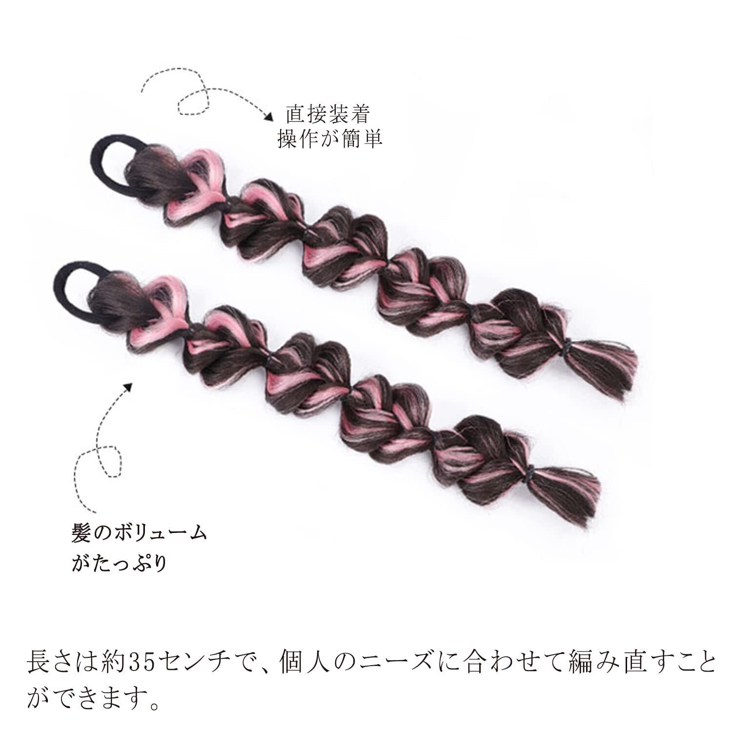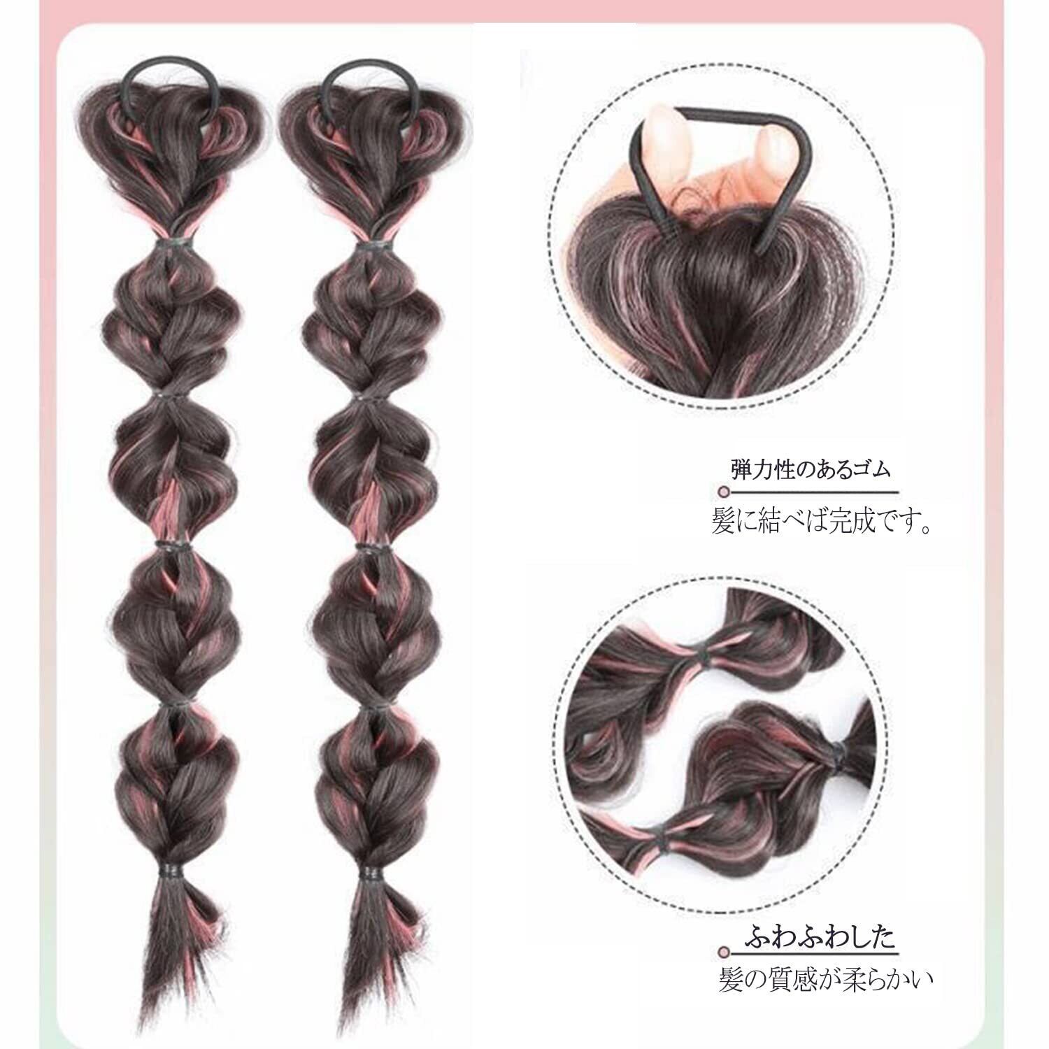 「輪ゴム付き」この編み込みのヘアエクステはゴムシュシュに結び付けられていますので、髪にシュシュを結べば使えます。輪ゴムは安定性があり、簡単に落ちないので使いやすいです。