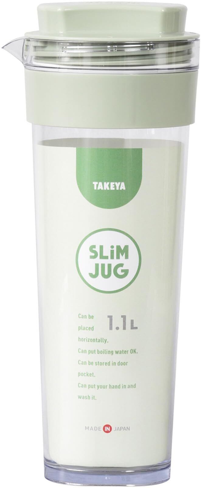 タケヤ化学工業 TAKEYA スリムジャグII 1.1L グリーン 耐熱100度 横置きOK 広口でお手入れ簡単 ドアポケットの前列に