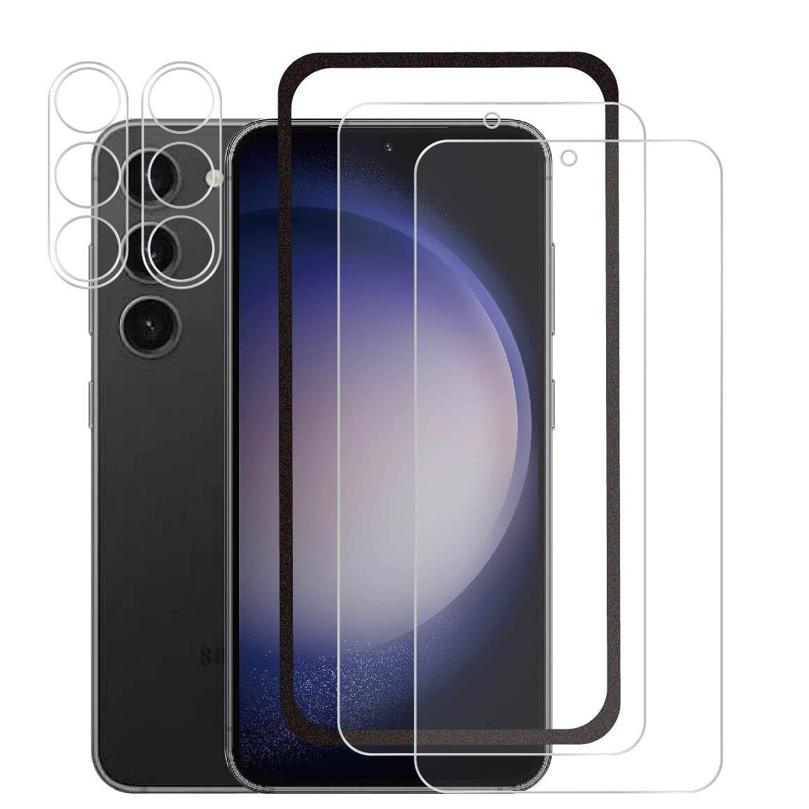 【対応機種・セット内容】対応機種:Galaxy S24 SCG25 SC-51E 専用 ガラスフィルム です。セット内容:2枚ガラスフィルム+2枚カメラフィルムセット+ガイド枠。