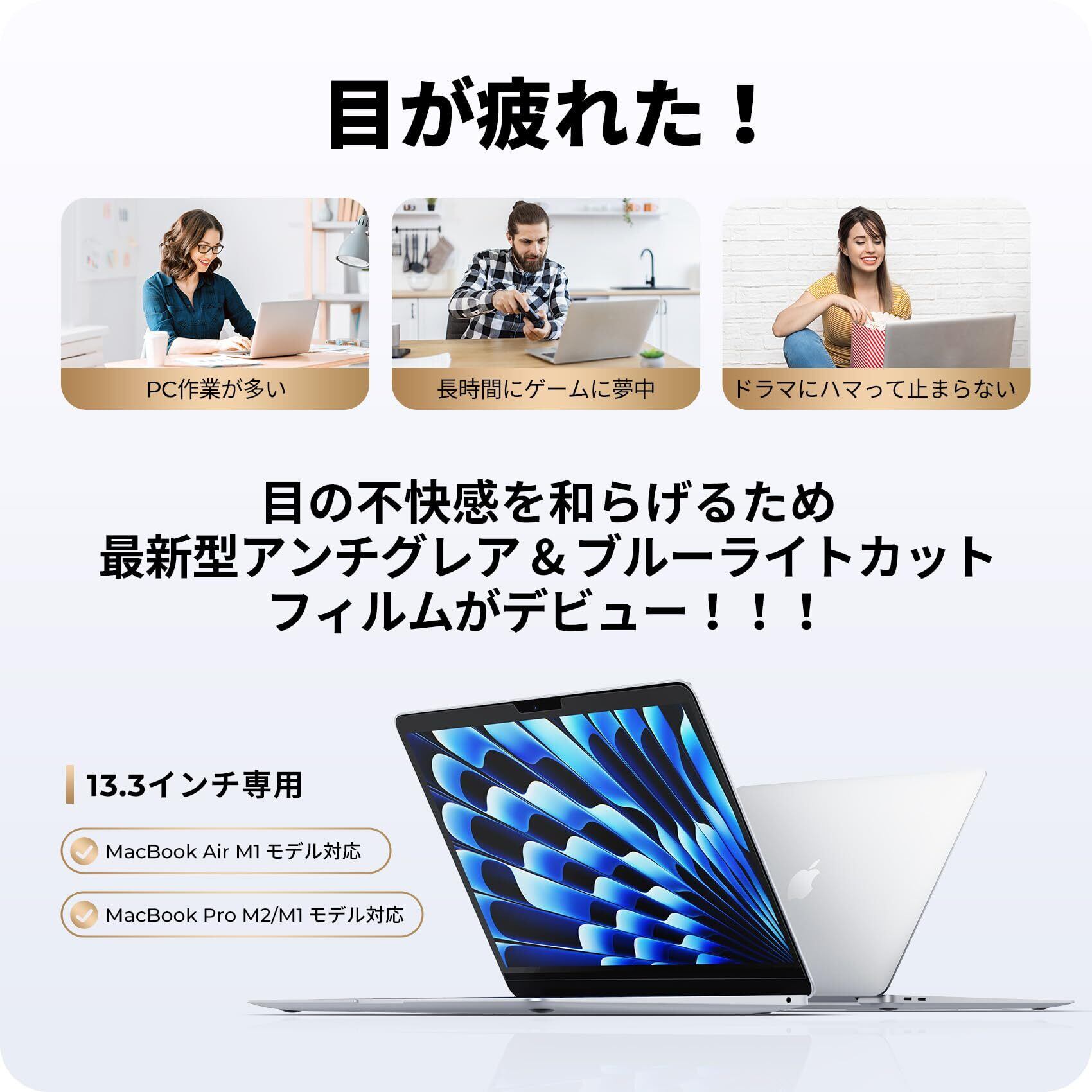 NIMASO 13インチ アンチグレア ブルーライトカット フィルム MacBook Air・Pro 13.3インチ 対応 マックブックエアー マックブックプロ M1 M2 2020 2022 保護フィルム 反射防止 気泡レス 指紋防止 NNB24C1171