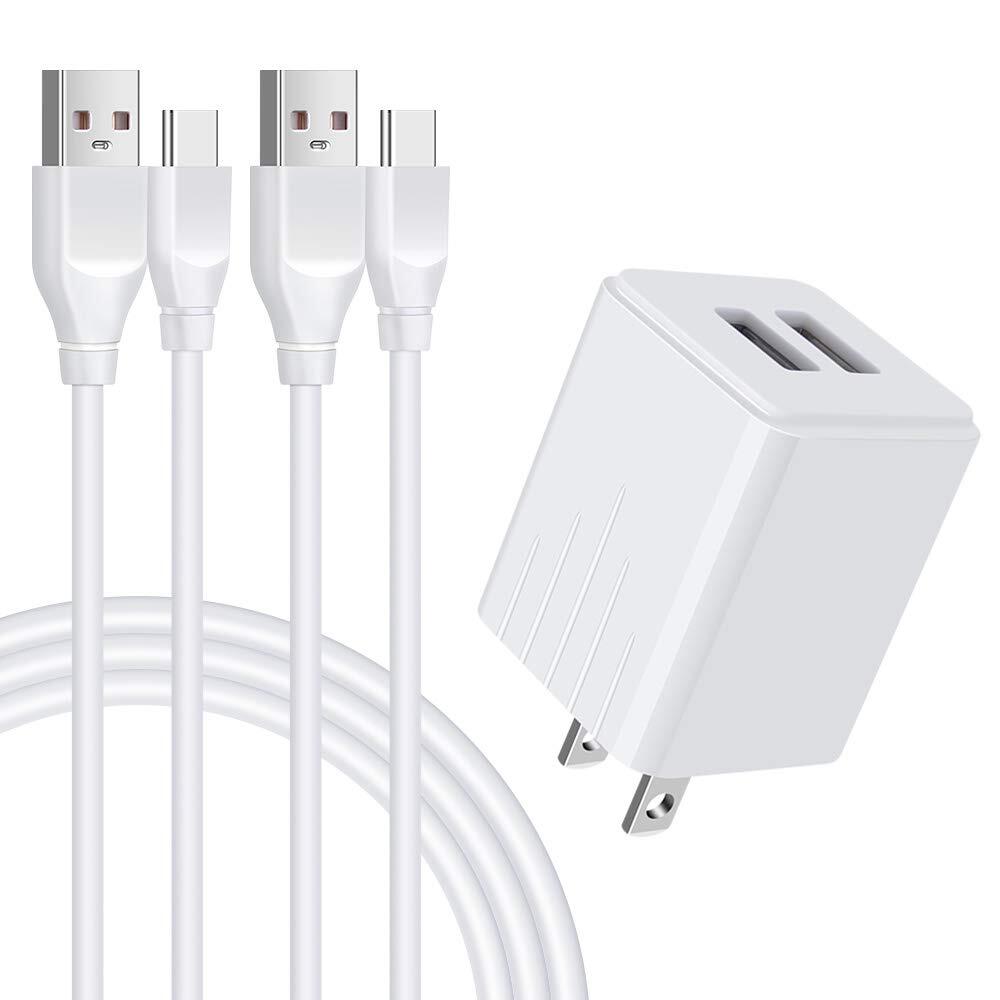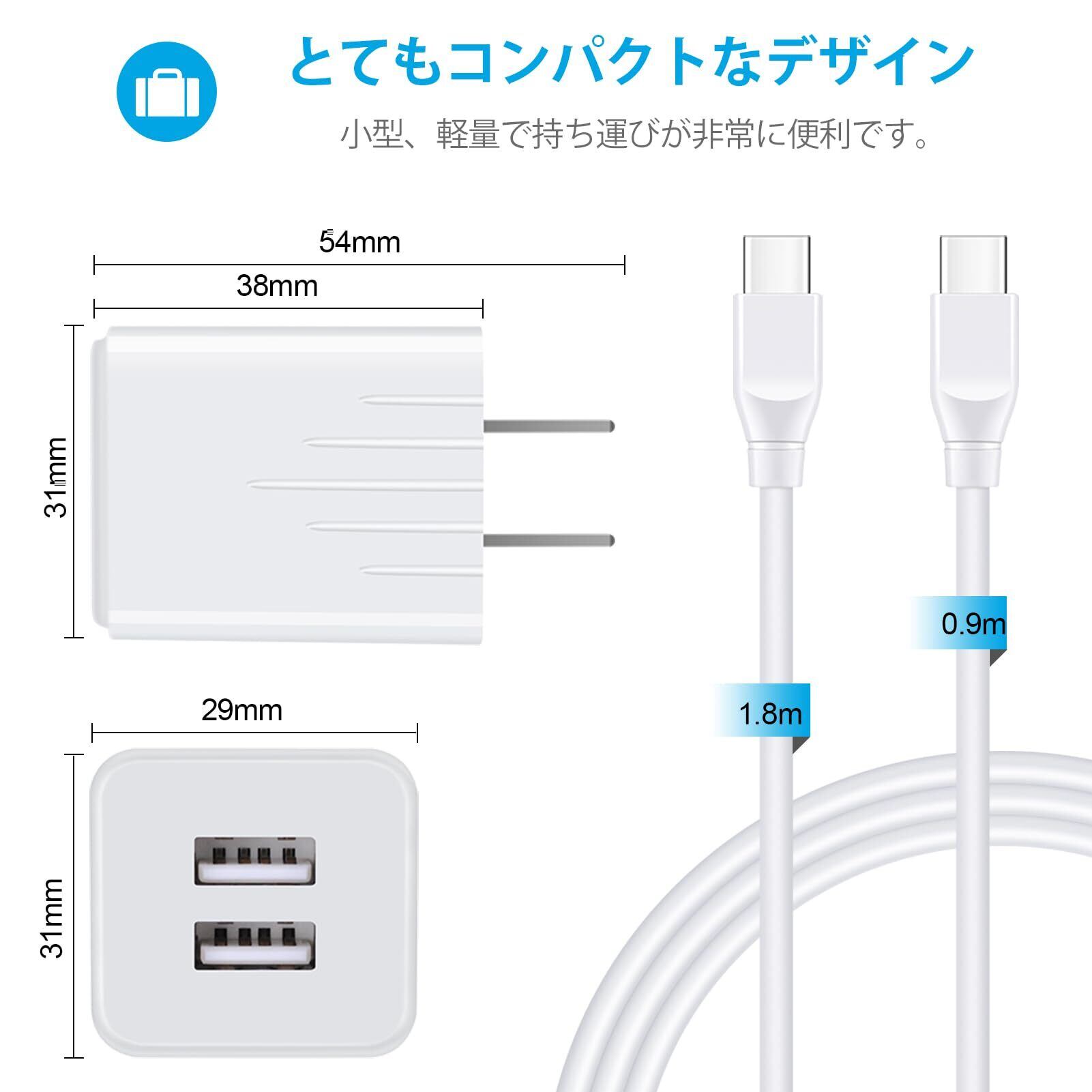 アンドロイド充電器 *1個+Type C充電ケーブル*2本(1.8M+0.9M) 2ポートUSB充電器 2.1A/PSE認証済み Andriod スマホ充電 ACアダプタ タイプc急速充電ケーブル USB電源アダプター スマホ充電コード (White)