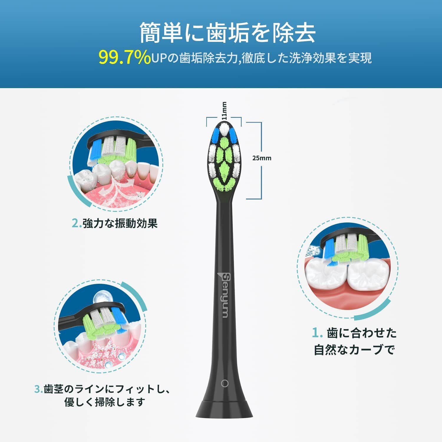 【最新進化モデル】Senyum 電動歯ブラシ 替えブラシ フィリップス ソニッケアー ダイヤモンドクリーン 交換用ブラシ対応可能 取り付け簡単 ブラック(8本入り)