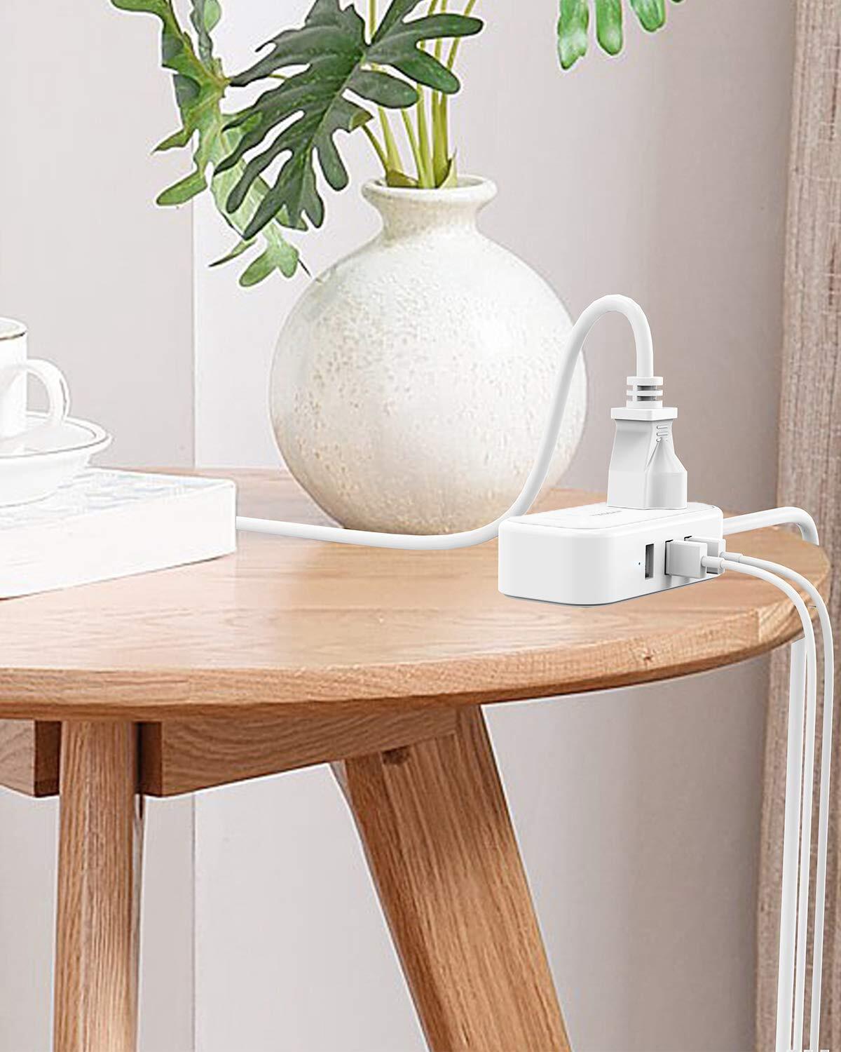 TESSAN 延長コード 1.5m 電源タップ たこあしコンセント テーブルタップ ホワイト AC2個 3USBポート 小型 タコ足配線 マルチ oa