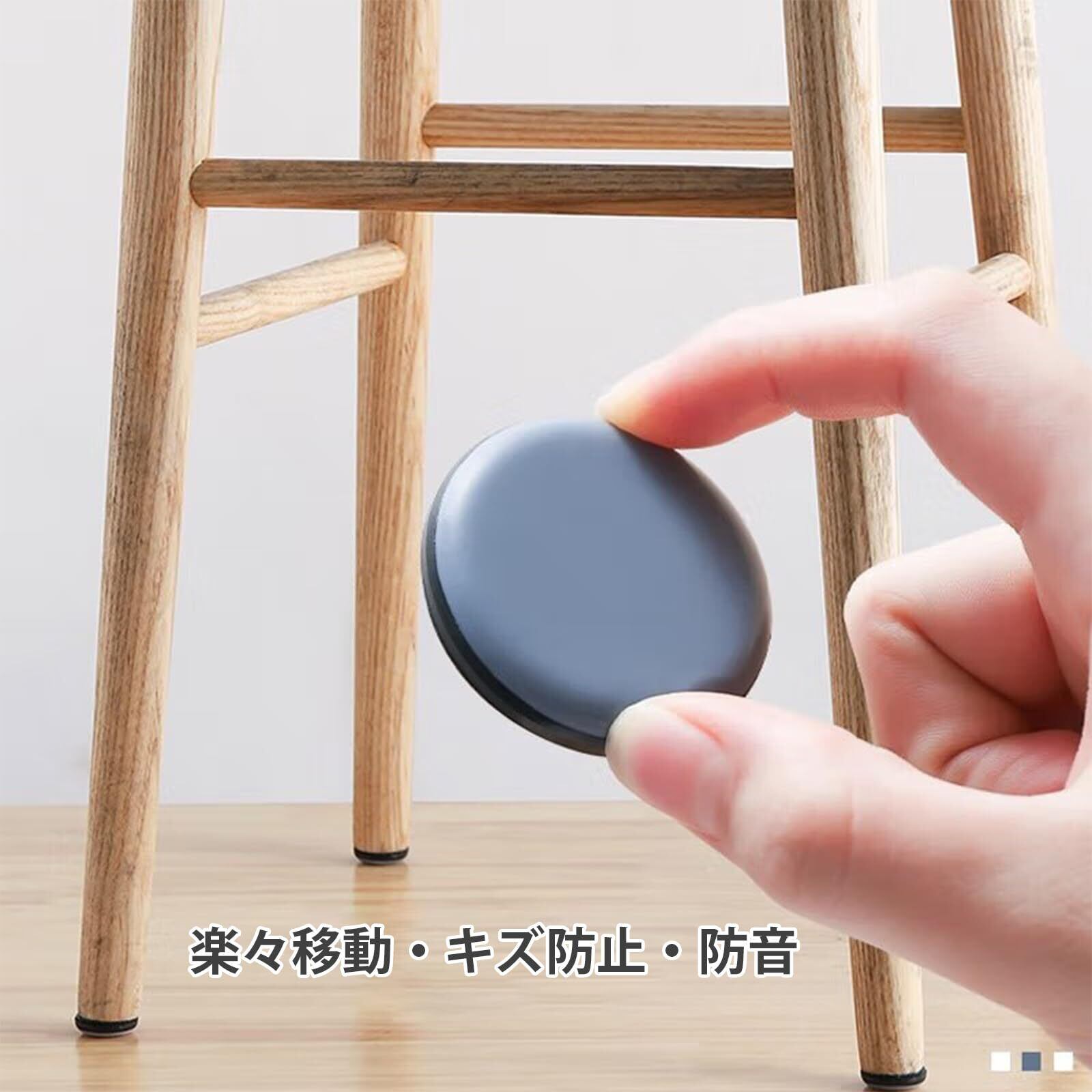 【キズ防止・防音効果】家具移動パッドを椅子の脚に取り付ければ、床を傷つけずにキズやニック、凹みから守ることができます。また、移動時の騒音も効果的に防止します。