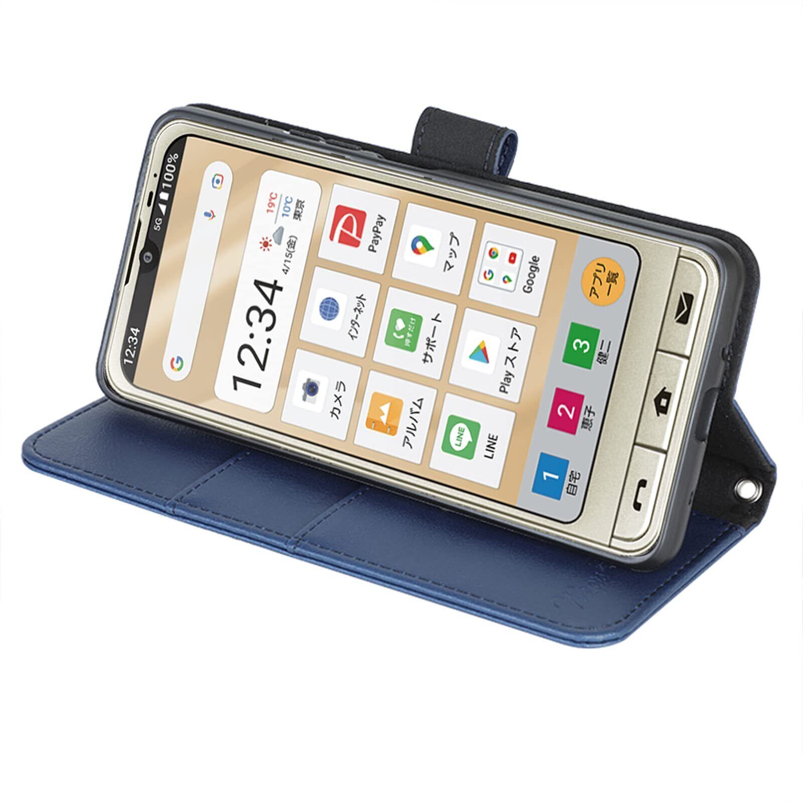 【在庫セール】シンプルスマホ6 A201SH シンプルスマホ7 A404SH Basio Active SHG09 Basio Active2 SHG12 対応 手帳型スマホケース (ダークブルー) 牛革調PUレザー (カードホルダー/スタンド機能付き) ストラップ2種付き(ハンドストラップ/ネックストラップ) プレゼント | lcsshop