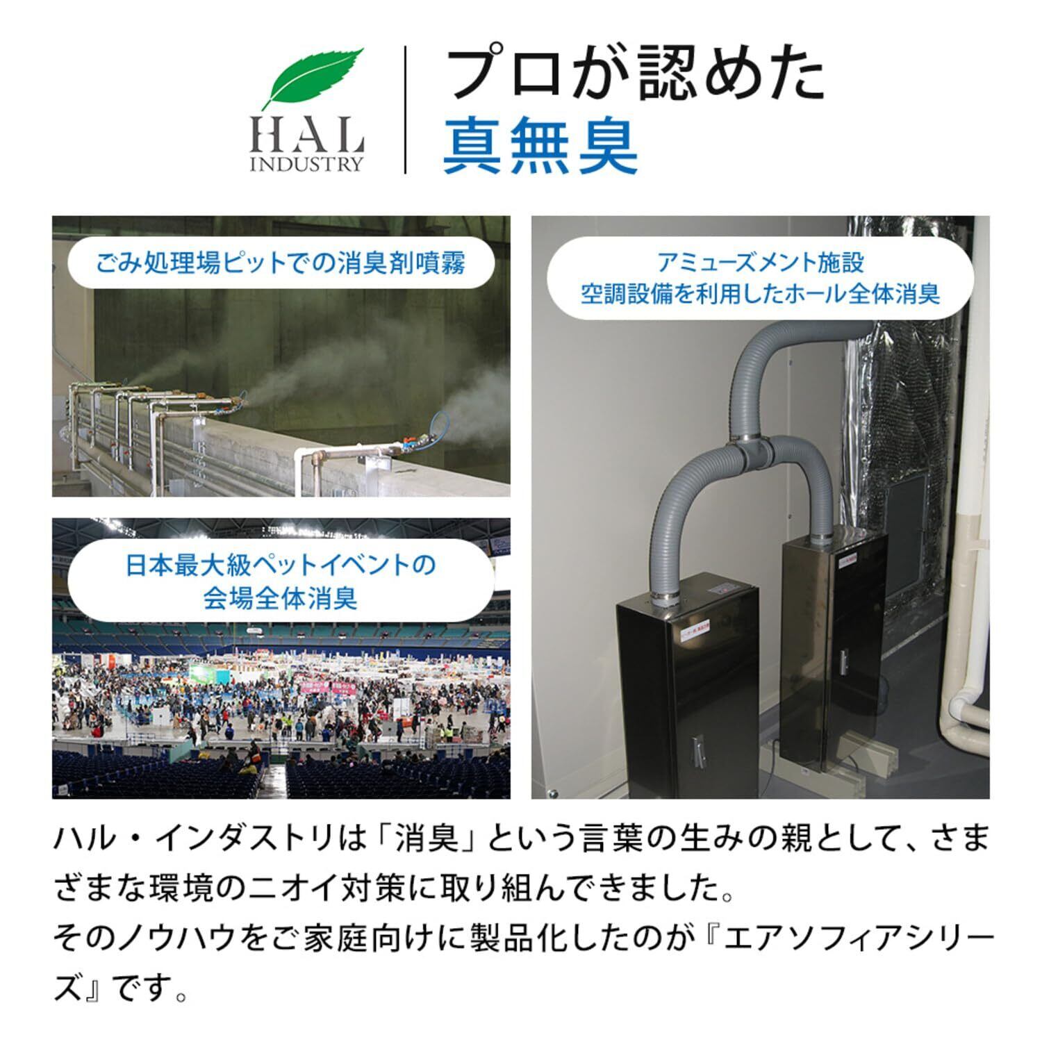 【無香料だから気にならない】消臭剤でも実際は香りでニオイを覆い隠している商品が多いですが、当製品はニオイの原因を中和・分解して「無臭化」する本物の消臭剤です。誰もが"ニオイ"を感じない「真無臭」という快適環境をご提案いたします。