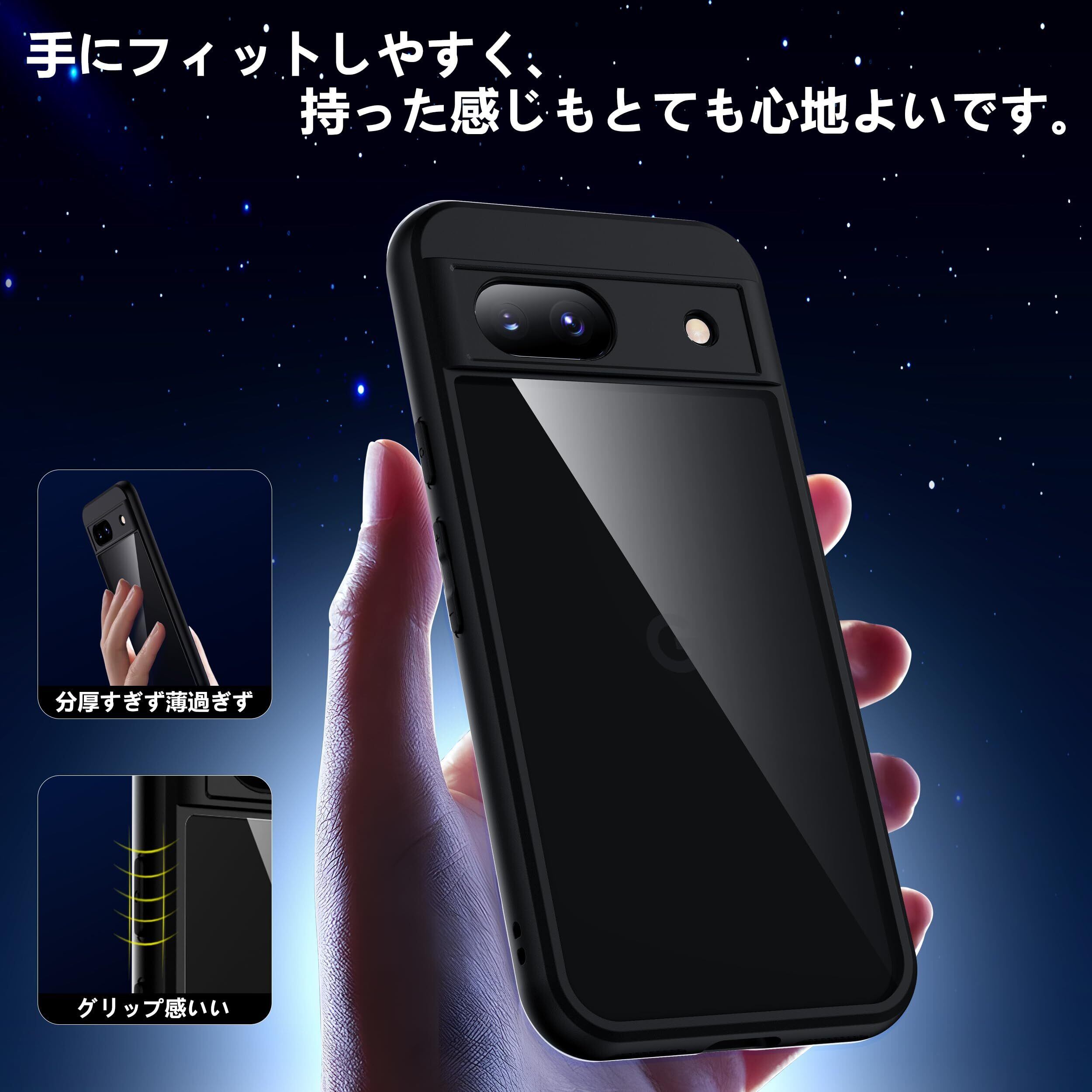 【新春セール】Google Pixel 8a ケース ブラック 黄変防止 グーグルピクセル8a ケース 耐衝撃 ガラスフイルム保護付き 指紋防止 落下防止 耐久性 ストラップホール付 薄型 軽量 ソフトカバー ワイヤレス充電対応 googleピクセル8a | lcsshop