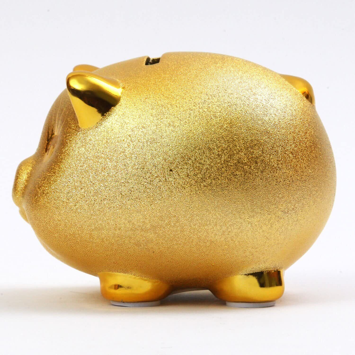 縁起物の金色の豚の貯金箱です。金運アップのゴールド色です。