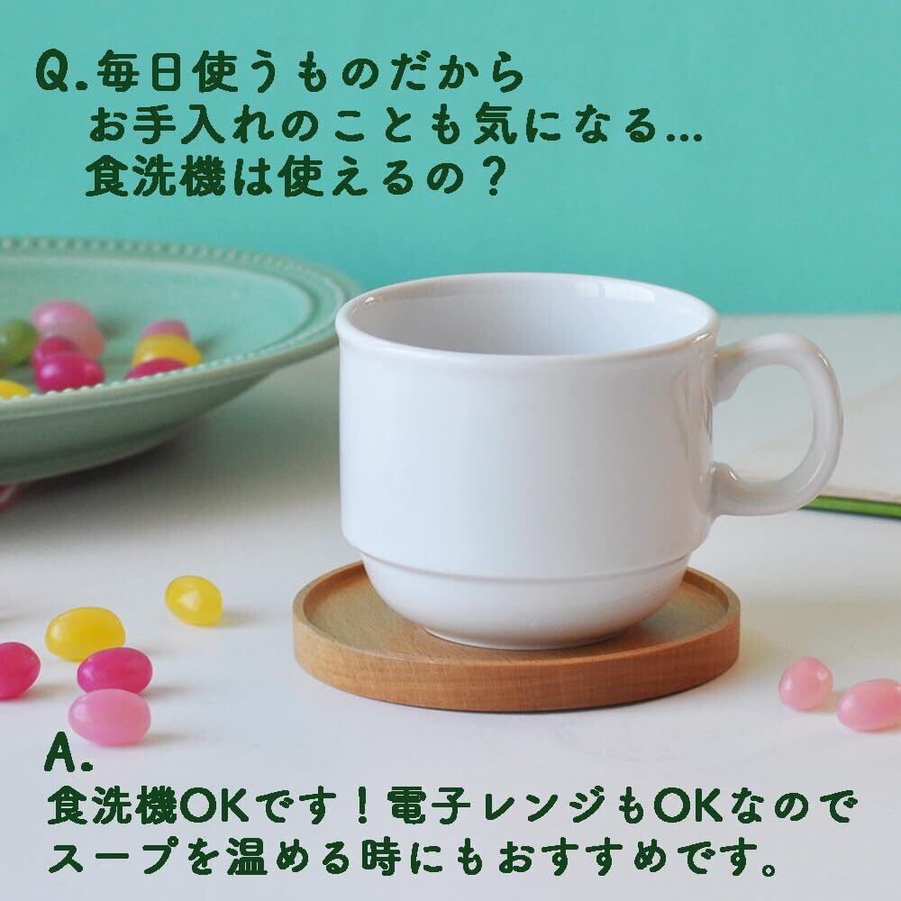 飲み物がおよそ130cc入ります。積み重ねができるタイプのマグカップです。