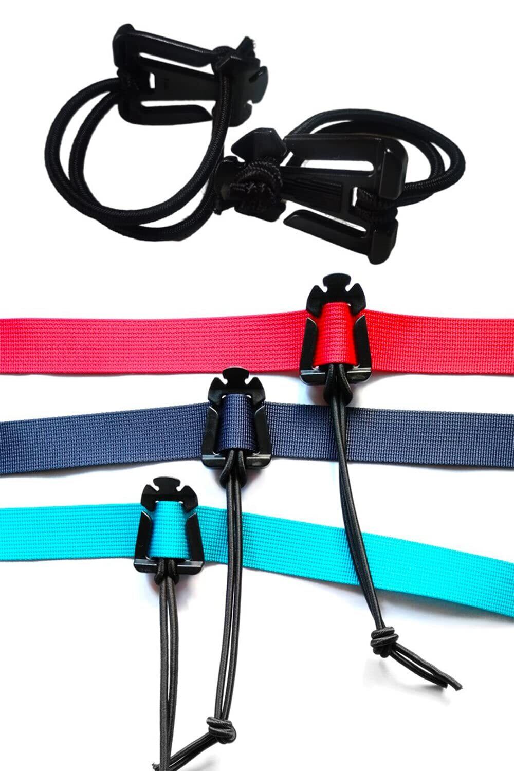 【仕様】ゴムひも付き固定バックル10個入;サイズ:約 34mm*45mm((固定可能帯域幅約26 mm)) ;カラー:ブラック。