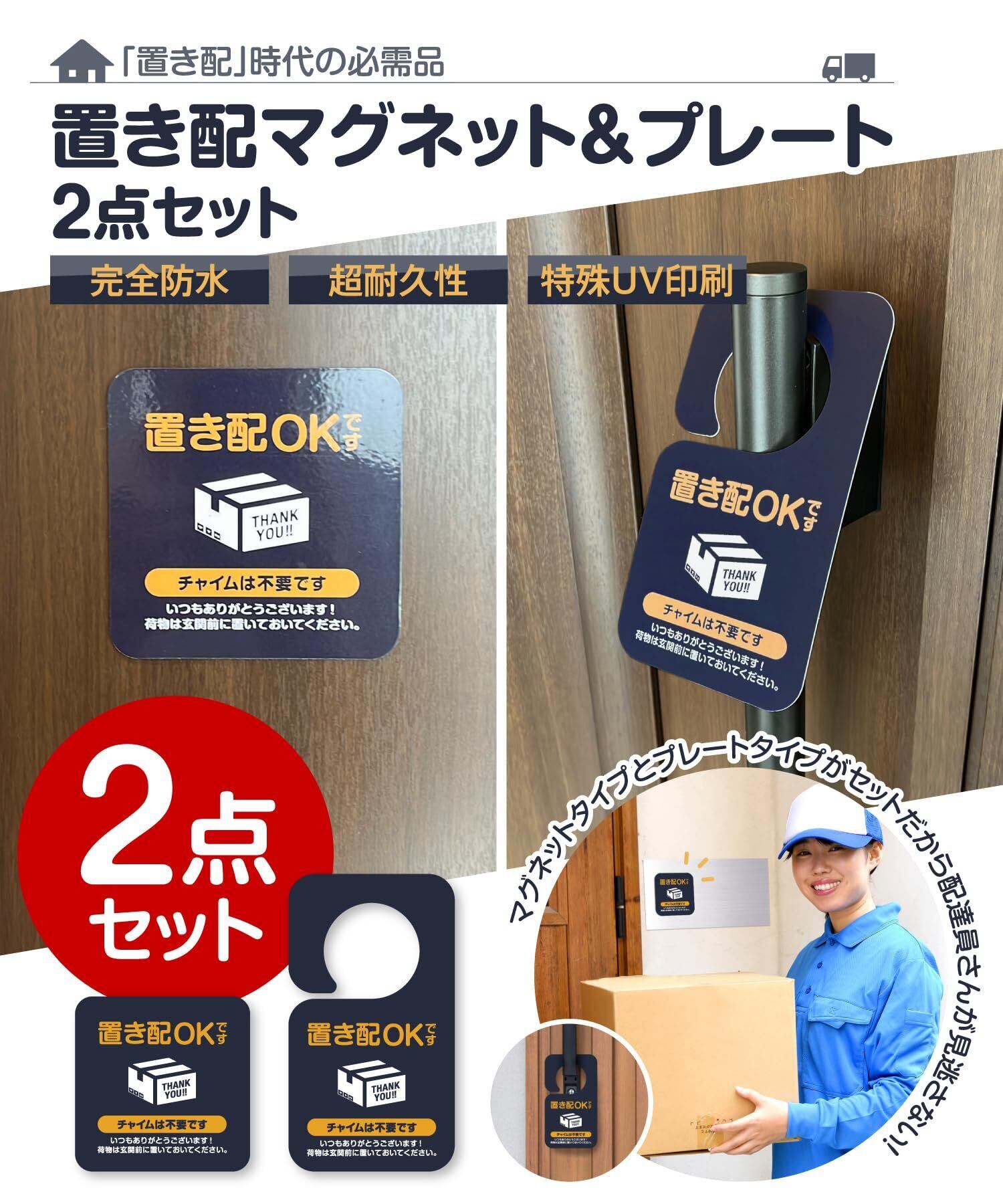 【置き配マグネットと置き配プレートの2点セット】ポストにマグネット、玄関ドアにプレートをそれぞれ設置できるので、配達員さんの見逃しを防げます。