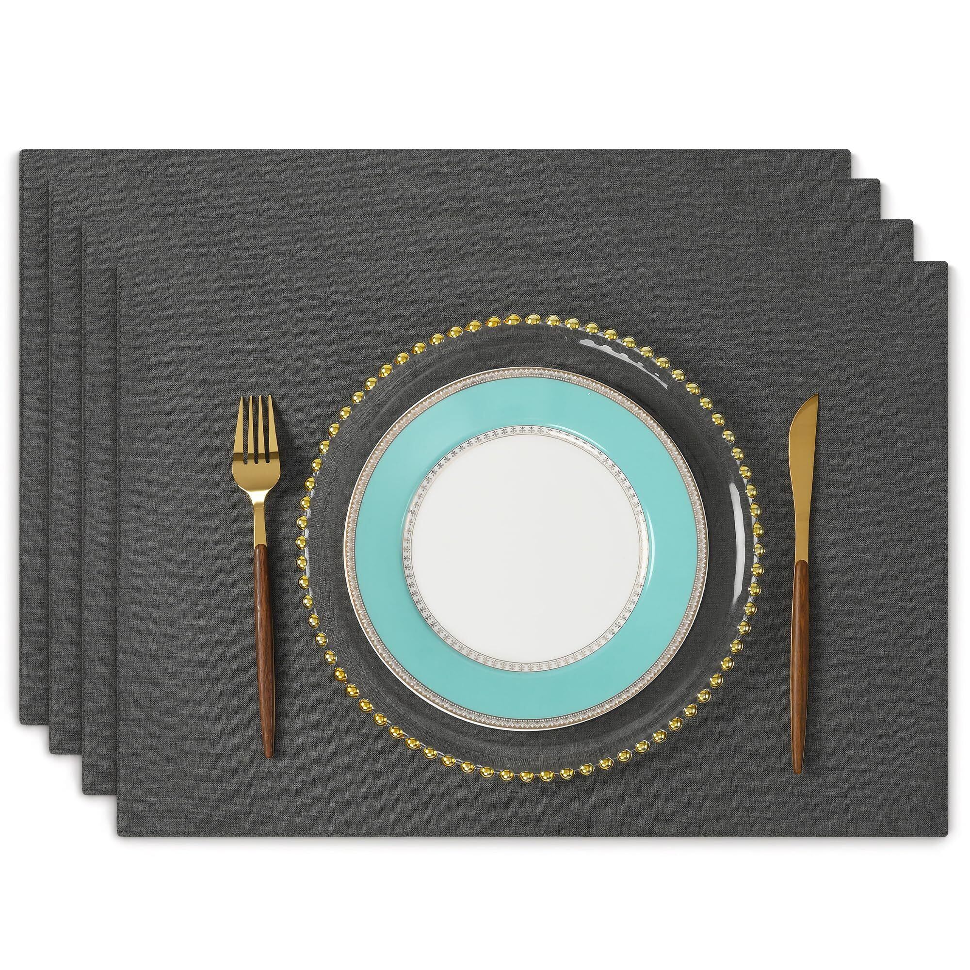 ランチョンマット布製 綿麻 二層生地縫製 丸洗い可 無地 和風 柔軟性 滑り止め 断熱 おしゃれ テーブルマット お手入れ簡単(横48cm×縦33cm,4枚セット,ダークグレー)