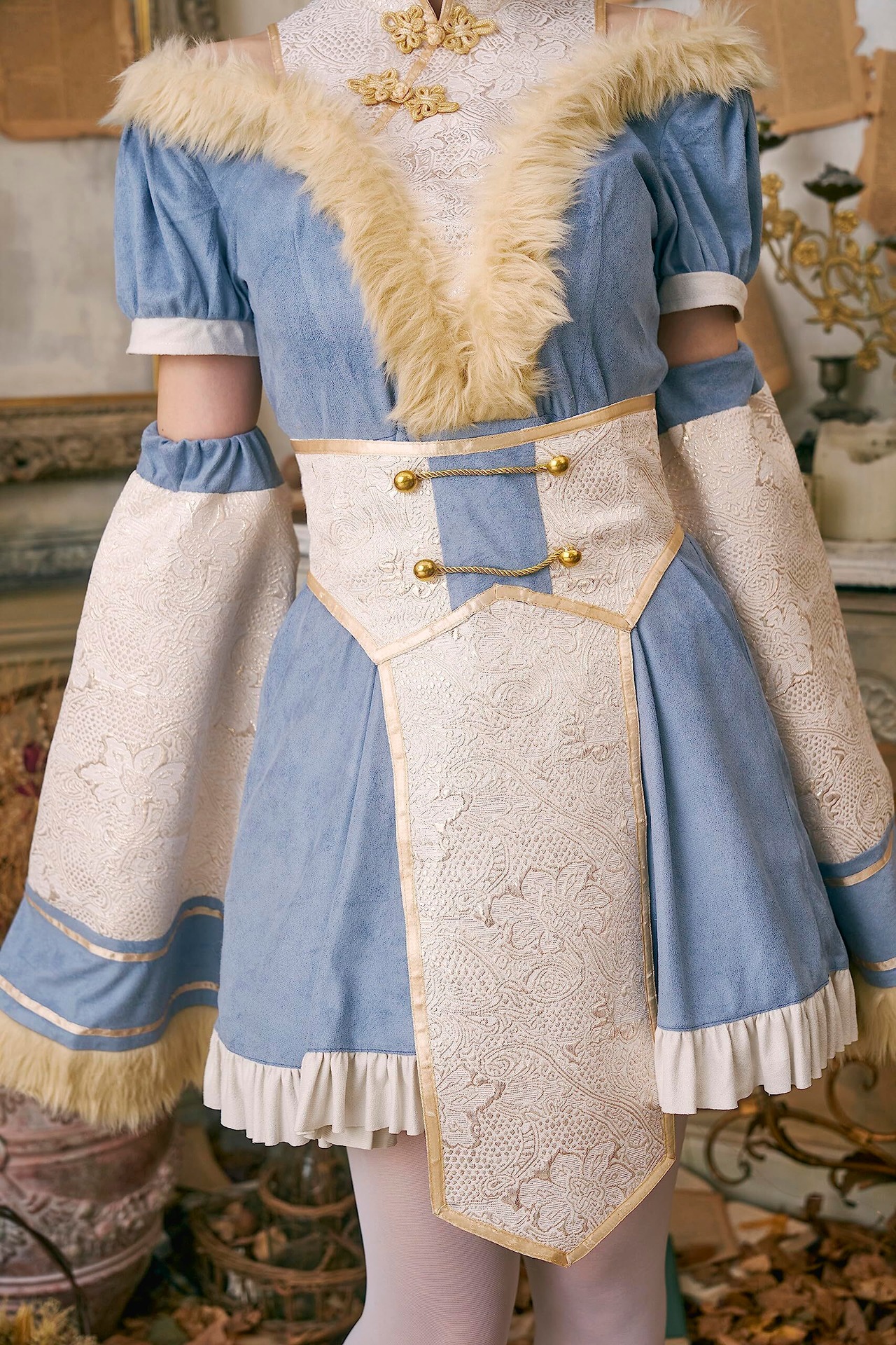 くすんだ水色とベージュがお洒落なキツネ×キョンシーのコスチューム。